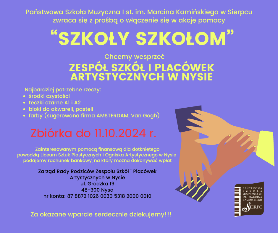 "Szkoły Szkołom" 01.10.2024 Zachęcamy nauczycieli, uczniów oraz rodziców do wzięcia udziału w akcji "Szkoły szkołom". Zdjęcia (1) Pokaż zdjęcie 1 z galerii.