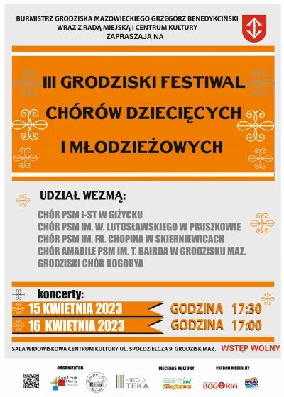 III grodziski festiwal chórów dziecięcych i młodzieżowych 15 - 16 kwietnia 2023r. 16.04.2023 Zdjęcia (1) Pokaż zdjęcie 1 z galerii.