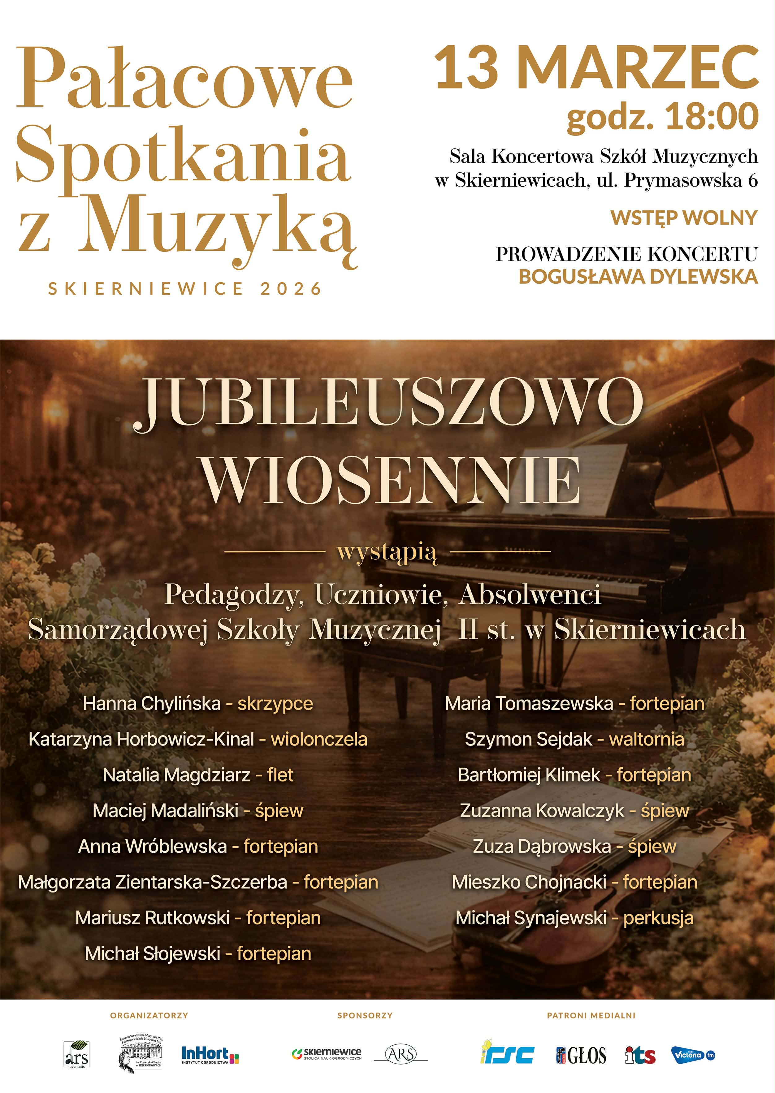 Pałacowe Spotkania z Muzyką "JUBILEUSZOWO WIOSENNIE" 13 marca godz. 18:00