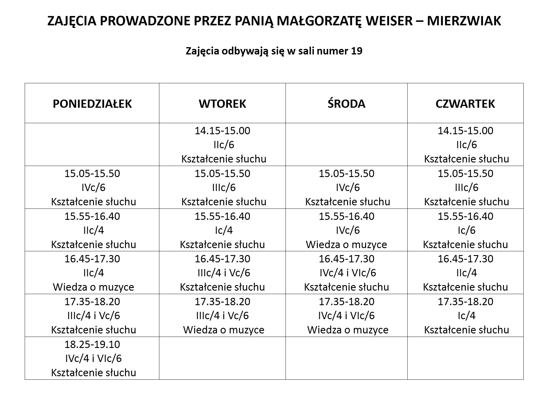 Przypominamy, że plan zajęć z instrumentów należy każdorazowo uzgadniać z nauczycielem prowadzącym.