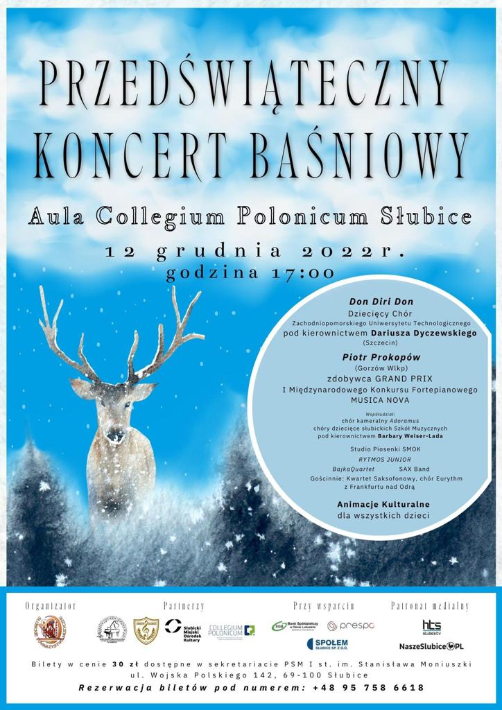 Koncert odbędzie się 12 grudnia o godzinie 17:00 w Auli Collegium Polonicum. Będziemy mieli okazję usłyszeć wyjątkowe aranżacje piosenek z bajek Disneya, znanych i lubianych piosenek świątecznych. Nie zabraknie również tradycyjnych piosenek góralskich w ciekawych aranżacjach chóralnych. Gościem specjalnym koncertu będzie Chór Dziecięcy Don Diri Don ze Szczecina oraz zdobywca Grand Prix I Międzynarodowego Konkursu Fortepianowego MUSICA NOVA Piotr Prokopów. W finale koncertu specjalna niespodzianka w wykonaniu wszystkich uczestników! Zachęcamy do wcześniejszego przybycia – na dzieci przed i po wydarzeniu czekać będą animacje kulturalne. Całe przedsięwzięcie nie mogłoby się odbyć bez wsparcia Słubickiego Towarzystwa Muzycznego, Słubickiego Miejskiego Ośrodka Kultury, Collegium Polonicum i Społecznej Niepublicznej Ogólnokształcącej Szkoły Muzycznej oraz sponsorów (MP).