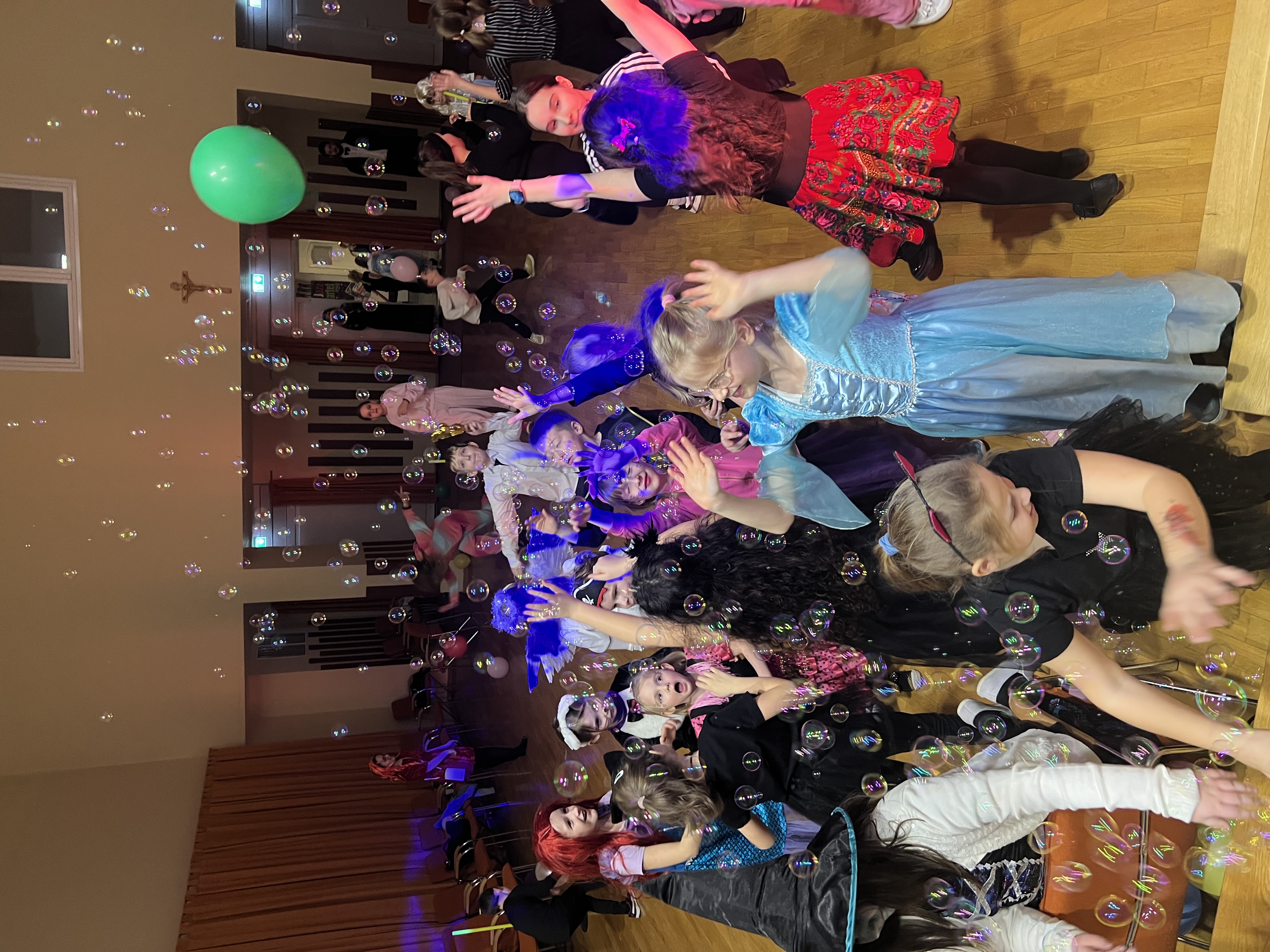 W szkole zaroiło się od dzieci przebranych za piratów, wróżki, księżniczki, różne stwory i dziwadła. Wszyscy bawili się znakomicie, bo humor dopisywał zarówno dzieciom, nauczycielom jak i rodzicom. Były korowody, tańce i inne zabawy w parach. Dobra zabawa nieodłącznie związana jest z muzyką. O świetną zabawę i profesjonalną oprawę muzyczną zadbał zespół "Bawers", który jest naszym dzieciom już doskonale znany.