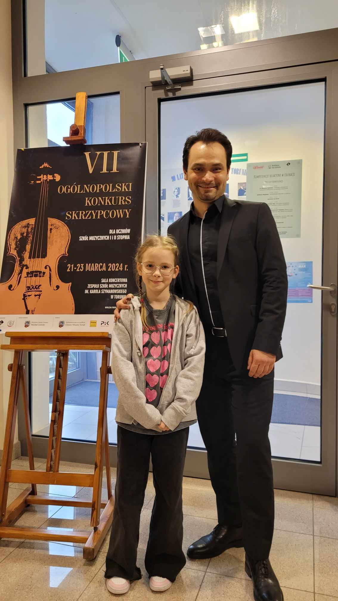 Anna Wesołek, uczennica klasy skrzypiec mgr Macieja Danielaka, zdobyła II nagrodę na VII Międzynarodowym Konkursie Skrzypcowym w Toruniu (21-23 marca). Przedsięwzięcie zrzeszyło młodych artystów z całej Polski, między innymi Warszawy, Łodzi i Wrocławia, osiągając tym samym wysoki poziom i rangę. Anna, jak i pozostali uczestnicy, oceniani byli przez wybitnych specjalistów w dziedzinie wiolinistyki - prof. dr. hab Bartosza Bryłę, dr. hab Janusza Wawrowskiego i mgr Katarzynę Dudę.