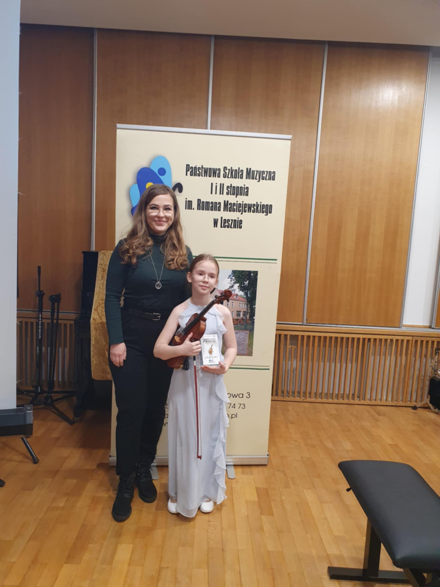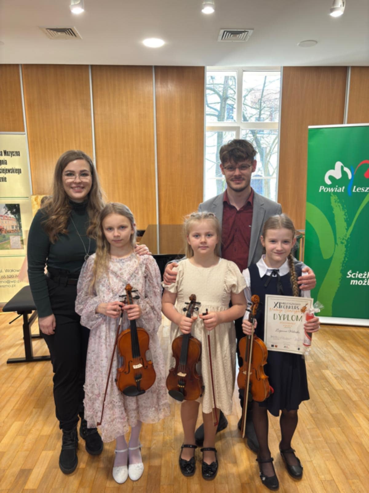 W poniedziałek 3 marca czworo skrzypaczek z naszej szkoły wspaniale zaprezentowało się na XI Konkursie Małego Skrzypka w Lesznie: Nel Adamczyk z klasy skrzypiec Pani Martyny Bartczak, Zuzanna Moskal z klasy Pana Macieja Danielaka, Zuzanna Wolińska z klasy Pana Macieja Danielaka otrzymała dyplom POCHWAŁY. Ania Wesołek z klasy Pani Martyny Bartczak otrzymała tytuł LAUREATA oraz zdobyła najwyższą punktację w swojej grupie.