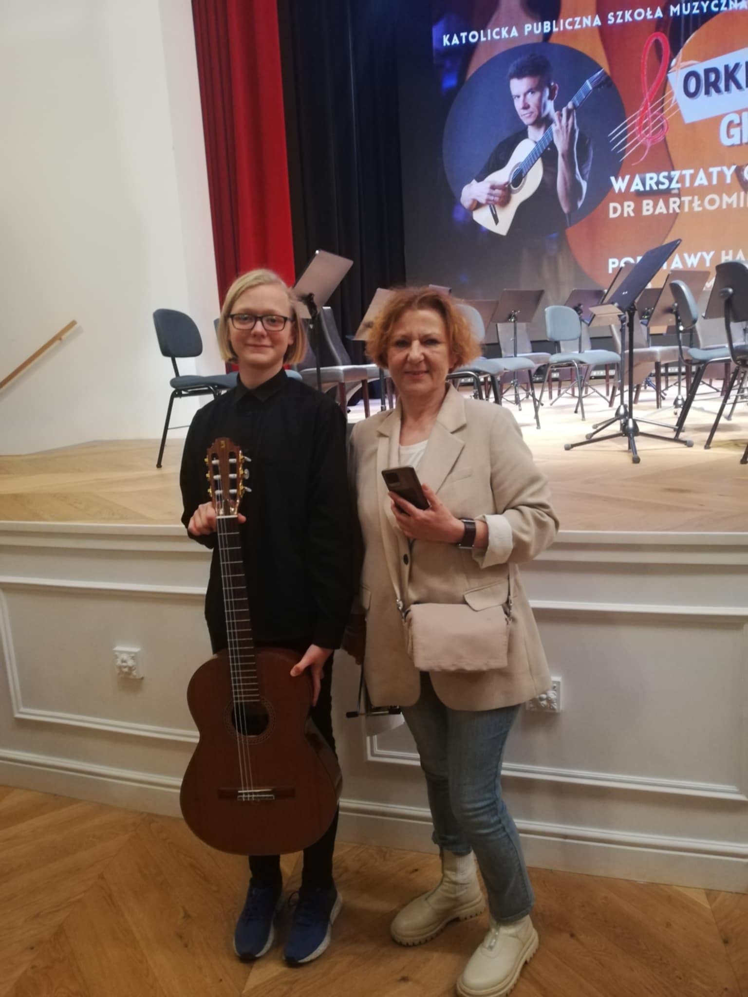 11 kwietnia uczeń Szymon Burzyński wraz z nauczycielką p. Agatą Nowak – Gibas uczestniczyli w warsztatach gry zespołowej na gitarze w Śremie, prowadzonych przez dr Bartłomieja Marusika. Od godziny 11.00 do 16.45 odbywały się próby trzech utworów: M. Krotochwil – Potato blues, H. Purcell – Twas within a furlong of Edinburgh Town, W. Kazanecki – Walc Barbary, wszystkie w opracowaniu dr B. Marusika na 3 i 4 gitary.