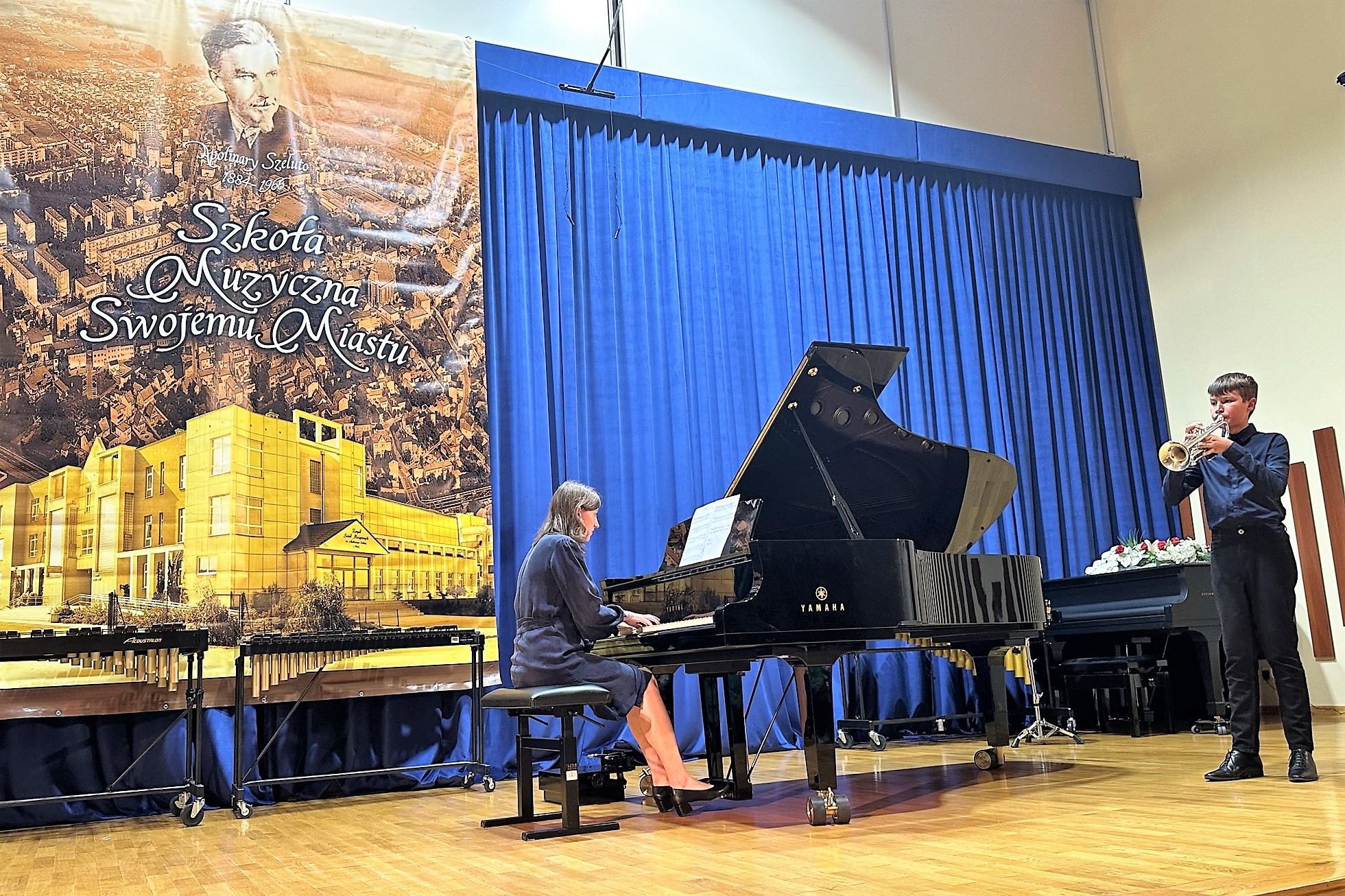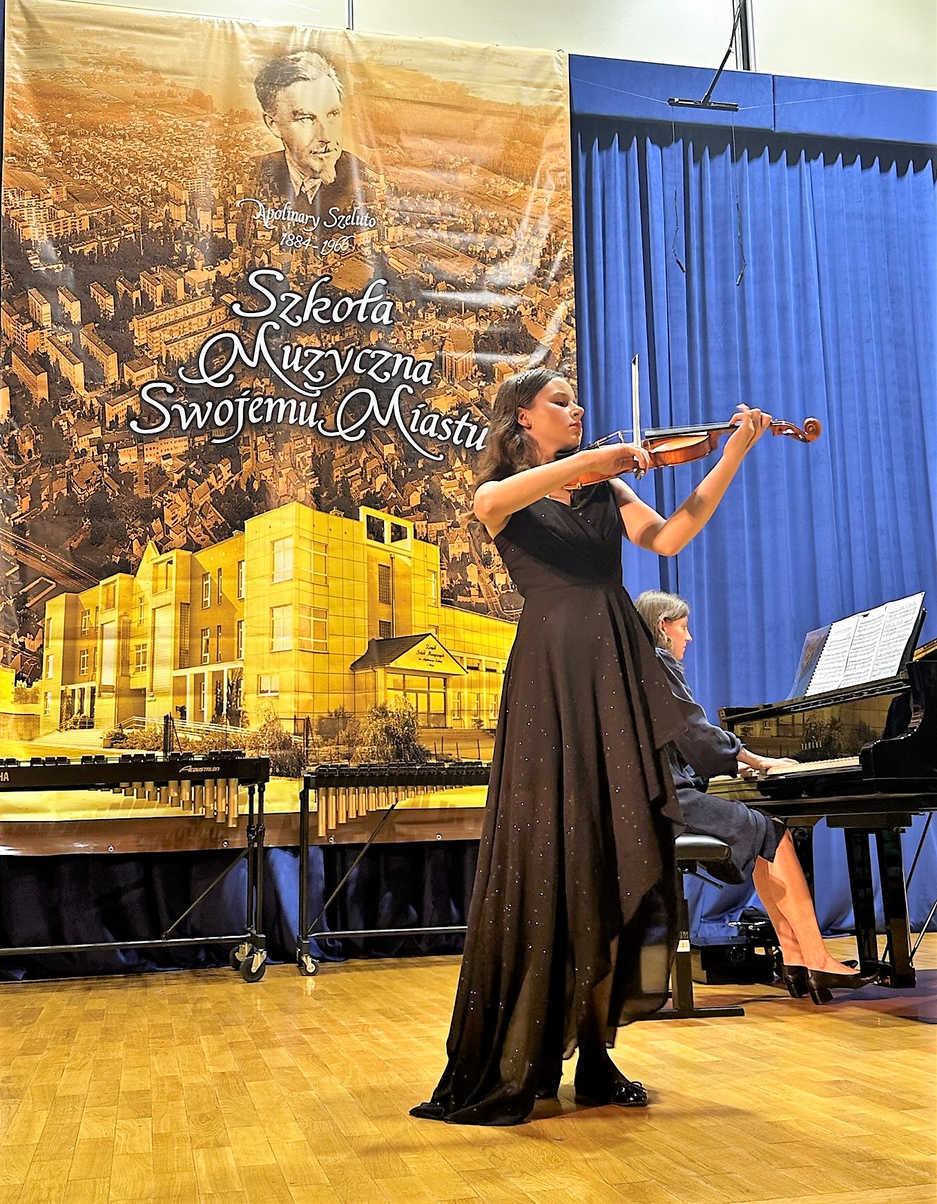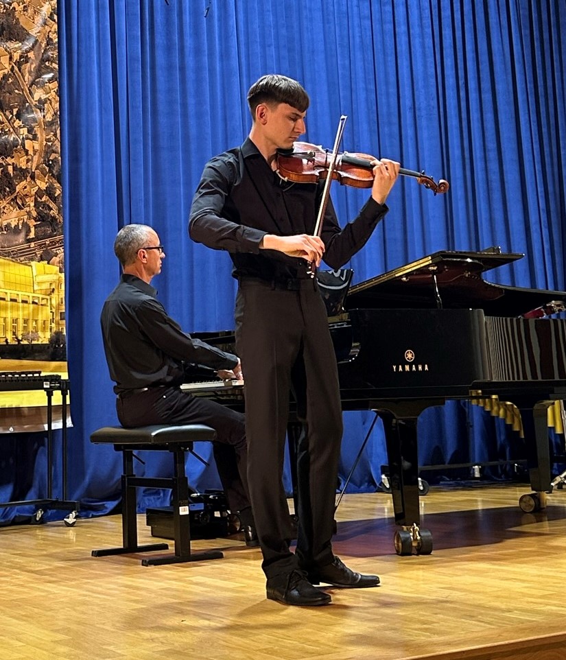 Niespodzianką koncertu był występ absolwenta naszej szkoły - skrzypka Mateusza Michalaka, obecnie ucznia POSM II st. im. Mieczysława Karłowicza w klasie dr hab. Kariny Gidaszewskiej i Mateusza Gidaszewskiego. Wspólnie z pianistą Adamem Szyszką wykonali niesamowicie barwną kompozycję Karola Szymanowskiego - Nokturn i Tarantella .