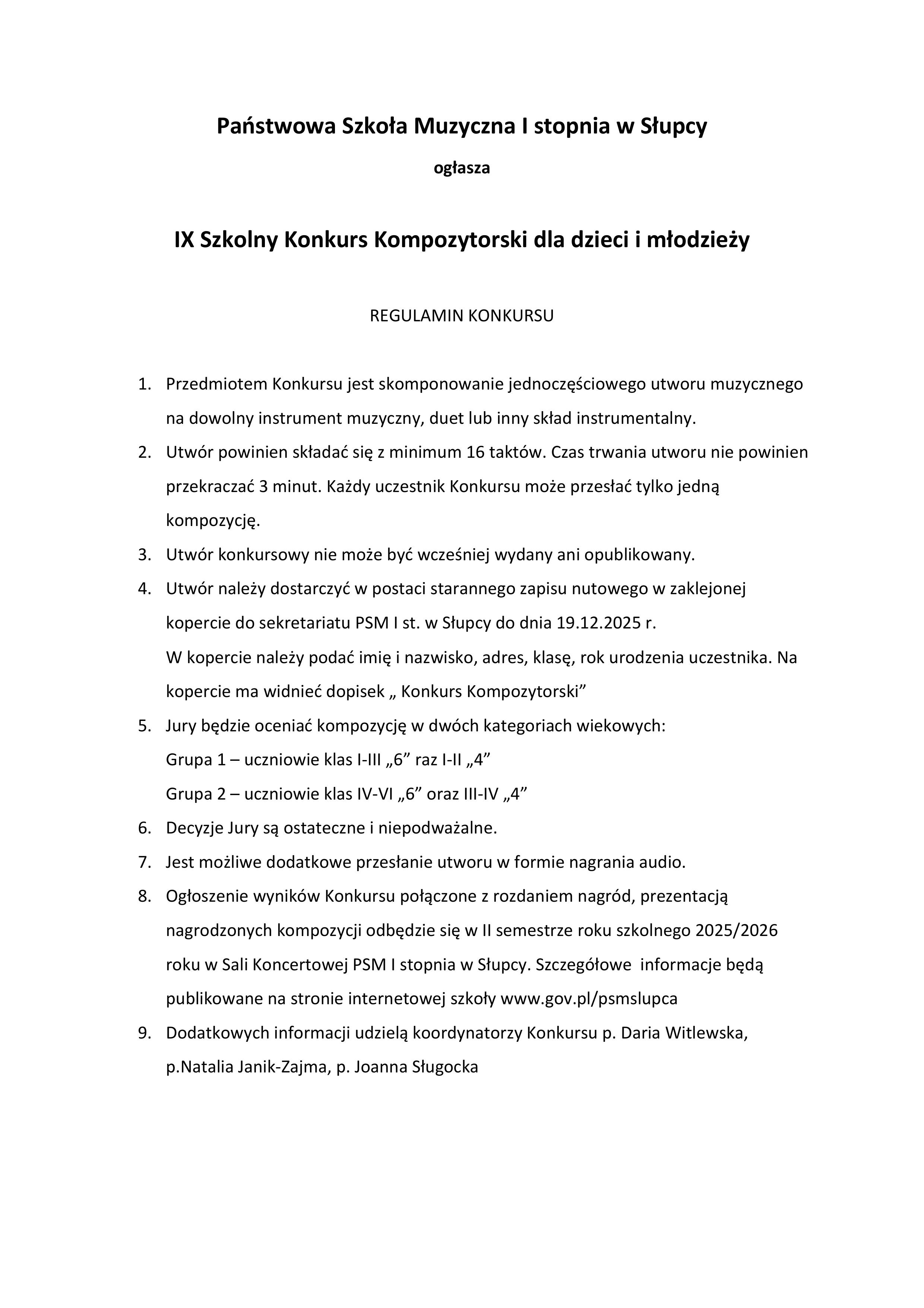 Zapraszamy uczniów do udziału w konkursie kompozytorskim 02.10.2025 Materiały Regulamin konkursu kompozytorskiego Regulamin_konkursu_kompozytorskiego.jpg 0.50MB