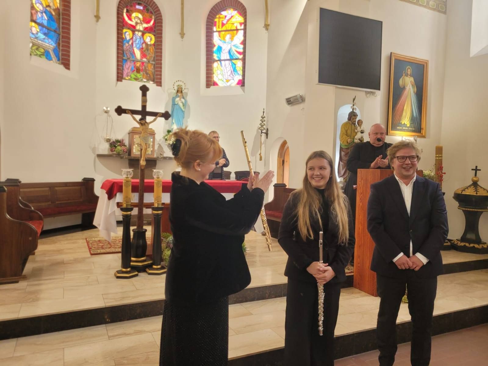 Naszą szkołę reprezentowała młoda, uzdolniona flecistka Julia Marchewka z klasy II PSM II stopnia, z klasy fletu Iwony Brosz. Zagrała J. S. Bacha - Sonatę C-dur cz. 3 i 4. Flecistce towarzyszył na organach Zbigniew Gach, dyrektor artystyczny tego szczególnego dla społeczności lokalnej wydarzenia.