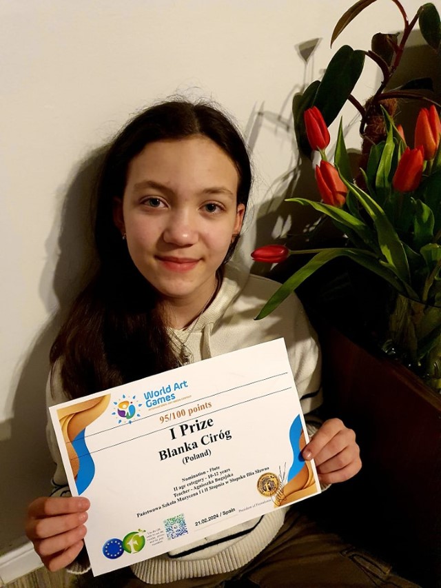 Blanka Ciróg (kl. VI c. 6) z klasy fletu Agnieszki Bugajskiej zajęła wysokie miejsce w konkursie online: