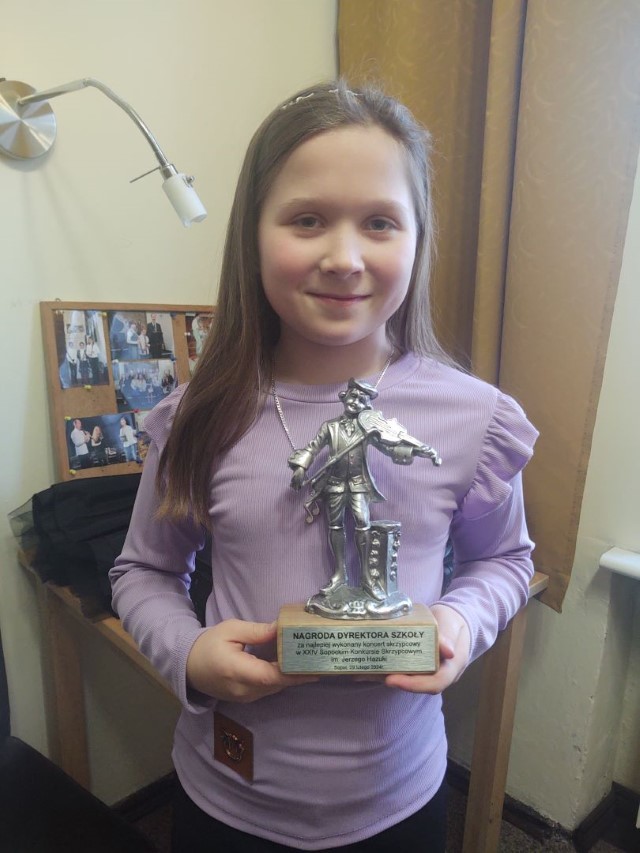 - I miejsce w kat. I oraz Nagroda Dyrektora Szkoły za najlepiej wykonany koncert skrzypcowy w Makroregionalnym XXIV Sopockim Konkursie Skrzypcowym im. Jerzego Hazuki. (29.02.2024 r.)