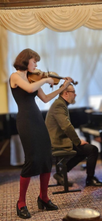 Dnia 28 marca 2025 r. odbył się w naszej Szkole niesamowity koncert. Gościliśmy młodych muzyków - tegorocznych dyplomantów z Zespołu Państwowych Szkół Muzycznych im. Grażyny Bacewicz w Koszalinie. Koncert wypełniła muzyka skrzypcowa i perkusyjna. W repertuarze znalazły się rytmy ormiańskie, muzyka żydowska, brazylijska bossa nova, trochę jazzu, a także muzyka rozrywkowa.
