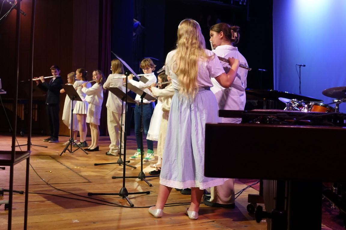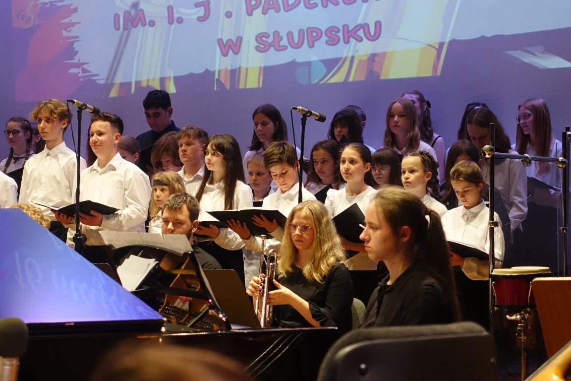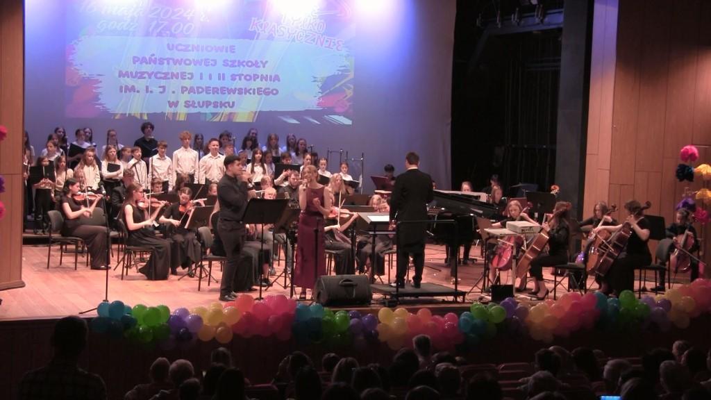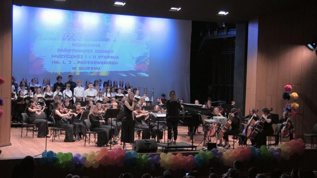 Układy taneczne kl 1a 1b kl. 2a oraz kl. 3 cykl 6-letni oraz układ taneczny zespołu uczennic kl. 4-6 cyklu 6-letniego PSM I stopnia, w którym zaśpiewała Oliwia Pitura – uczennica kl. III c.6 PSM I stopnia. Całosć przygotowała nauczycielka specjalności rytmika Pani Katarzyna Wyporska-Wawrzczak. Wystapili również: orkiestra fletowa pod kierunkiem nauczycielek fletu Iwony Brosz i Teresy Wojtunik; Maria Balcerzak – fortepian kl. V c.6 PSM I stopnia ucząca się w klasie Pani Barbary Sąsiadek; Michał Jastrzębski – klarnet kl. I A PSM II stopnia uczący się w klasie Pana Jarosława Nyca; Maja Owarzany – skrzypce kl. IV PSM II stopnia i Katarzyna Swędrowska – skrzypce kl VI PSM II stopnia , obie uczennice uczące się w klasie Pani Beaty Sąsiadek; Misza Szcześniak – śpiew kl. II PSM II stopnia, Milena Krumplewska – śpiew kl. II PSM II stopnia, Hanna Łukasiak – śpiew kl. II PSM II stopnia, uczennice klasy śpiewu uczące się pod kierunkiem Pani Karoliny Sikory; Chór i orkiestra PSM I i II stopnia w Słupsku prowadzona przez Panią Faustynę Hinc i Pana Macieja Banachowskiego. Całość koncertu prowadziła Pani Iwona Brosz.
