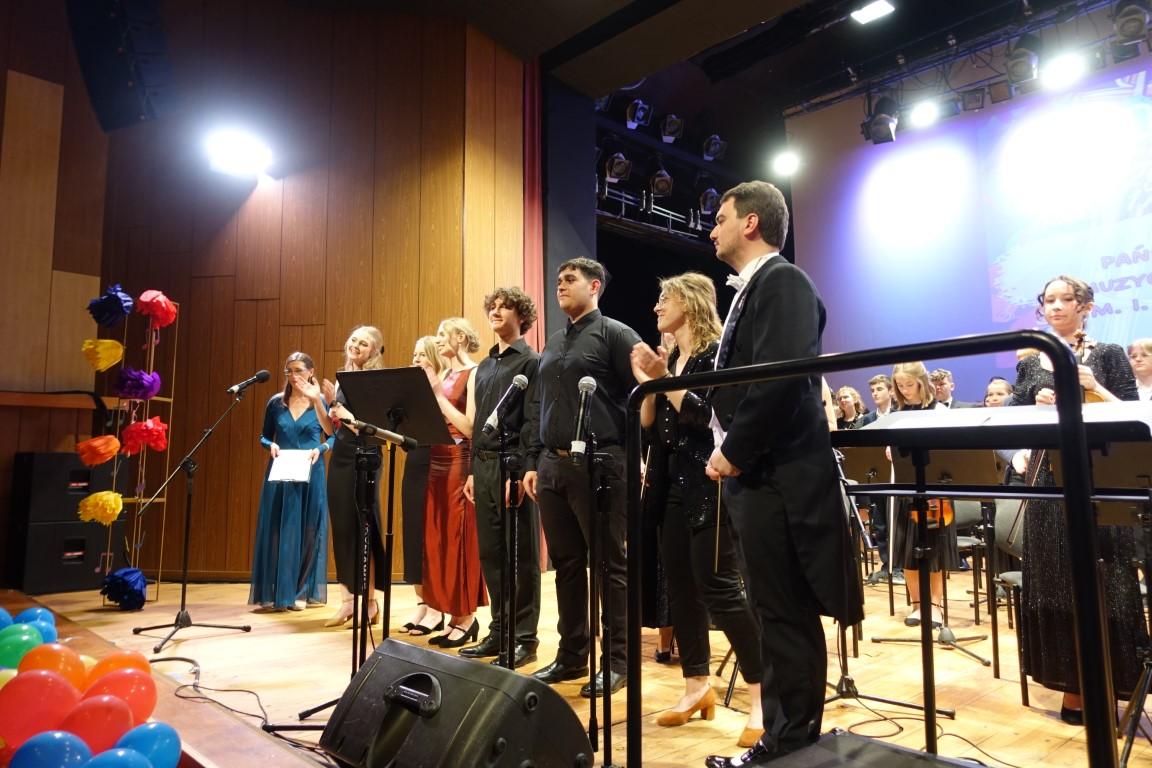 Na scenie pojawili się także nauczyciele akompaniujący uczniom: Pani Barbara Sąsiadek, Pan Przemysław Sysojew-Osiński, Pan Zenon Terefenko, Pan Wiesław Helinski i Pan Jarosław Nyc.