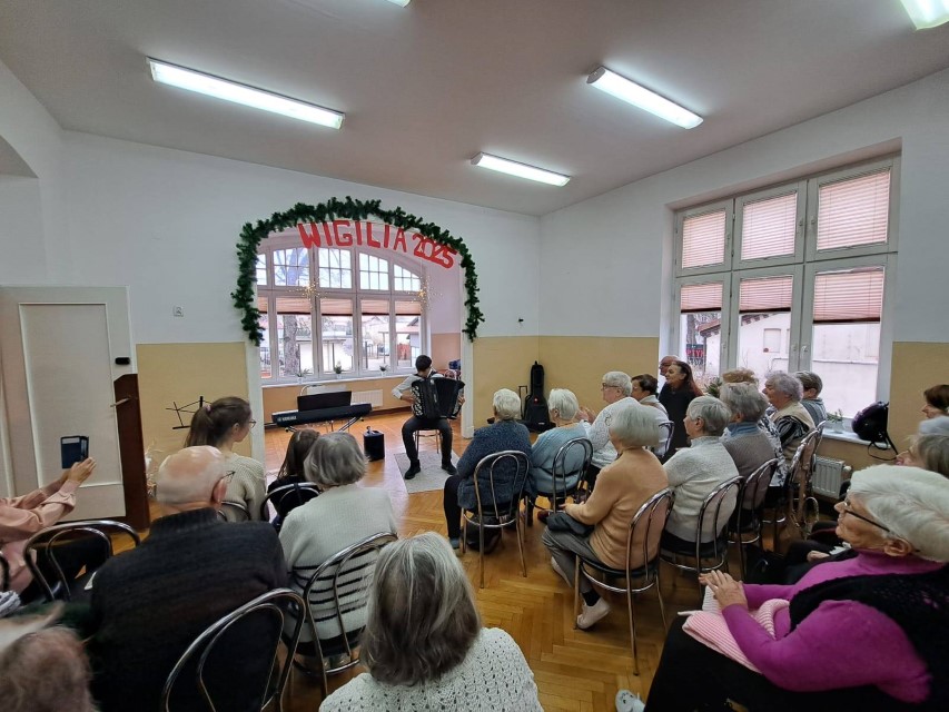 15 listopada 2025 w Domu Seniora w Słupsku rozbrzmiewały dźwięki muzyki wykonywanej przez uczniów i nauczycieli naszej szkoły.
