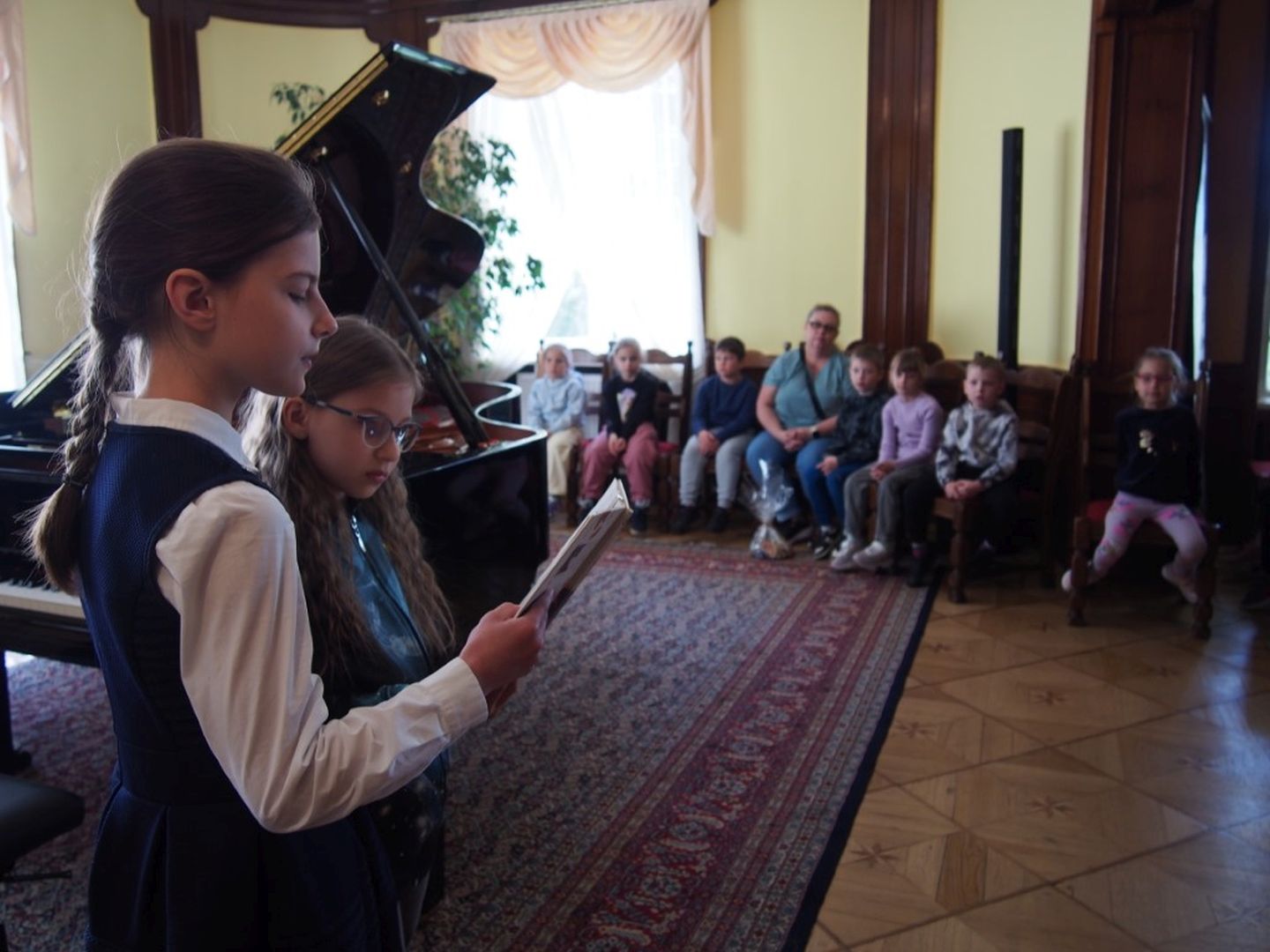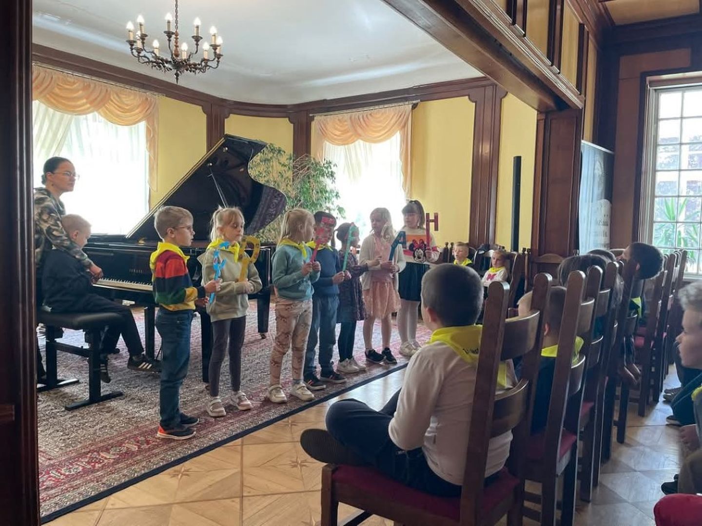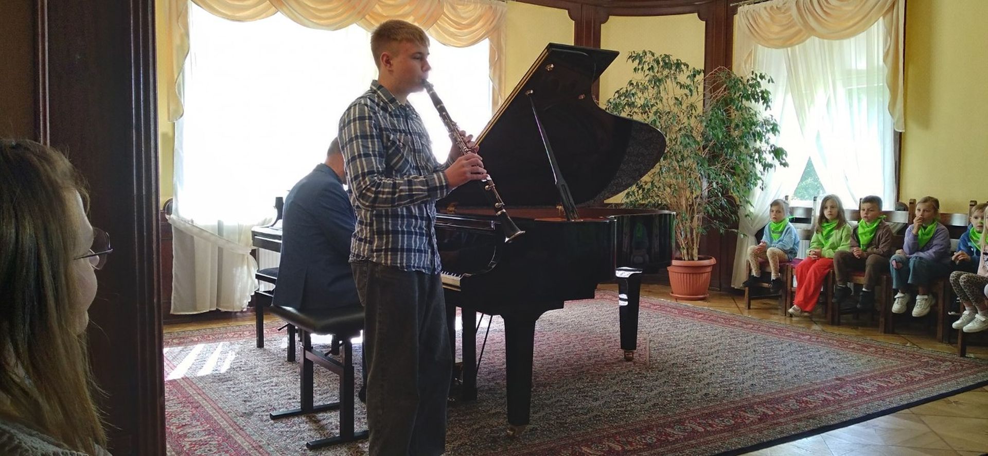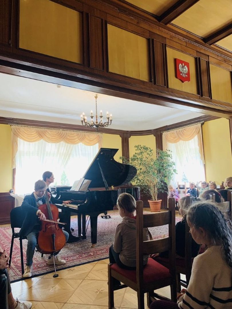 Po koncercie wszyscy robili sobie pamiątkowe zdjęcia przy fortepianie, w zabytkowym wnętrzu naszego pałacyku, a także w naszym pięknym parku.
