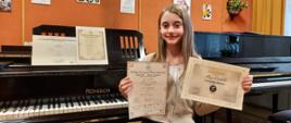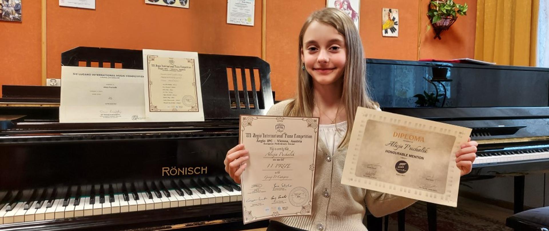 Konkursowe sukcesy Alicji Puchalik, uczennicy klasy V c.6, z klasy fortepianu Gabrieli Picz.