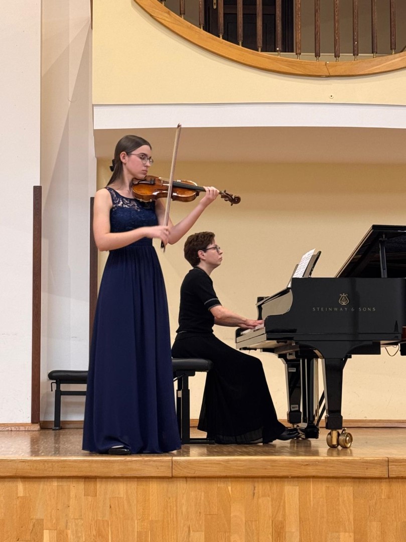 15 grudnia 2024r. w Akademii Muzycznej w Gdańsku odbył się koncert z cyklu „Młode Talenty w aMuz – najzdolniejsi uczniowie ze szkół muzycznych II st. województwa pomorskiego”. W wydarzeniu wspieranym przez Centrum Edukacji Artystycznej, obok uczniów z trójmiejskich szkół muzycznych II st., udział wzięły dwie uczennice naszej szkoły – Zofia Rembalska z klasy fortepianu Barbary Sąsiadek i Maja Owarzany z klasy skrzypiec Beaty Sąsiadek.