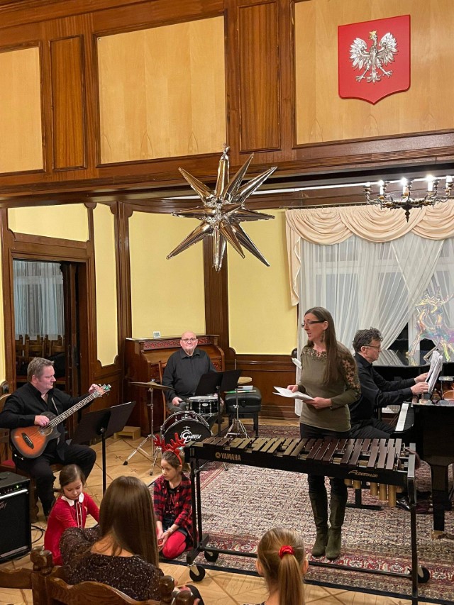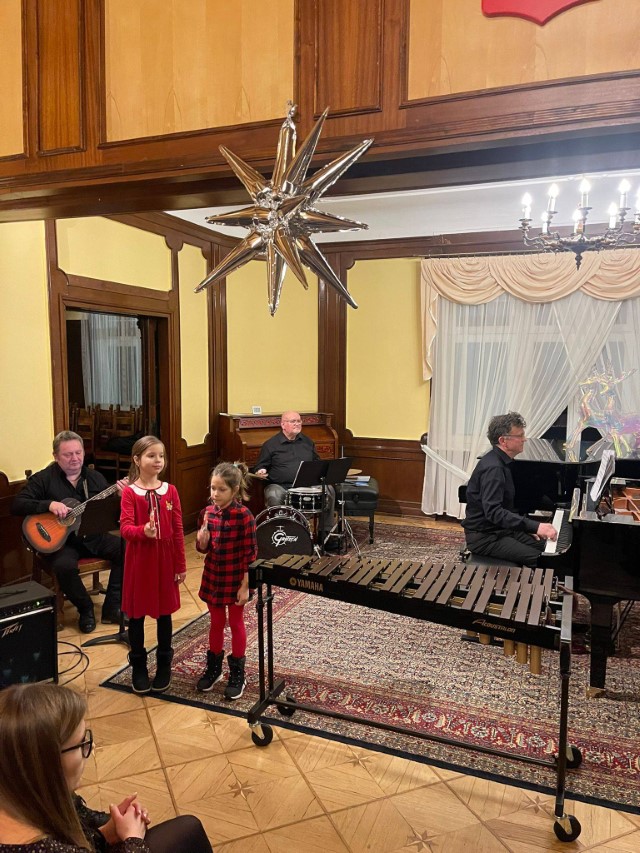 Uczniowie zaprezentowali kolędy i utwory świąteczne, występując wraz ze znakomitym zespołem w składzie: