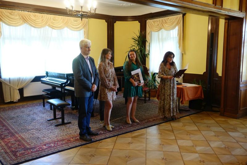 Po krótkim koncercie w wykonaniu uczniów PSM I st. Alicji Puchalik i Michała Orzechowskiego z klasy fortepianu Pani Gabrieli Picz oraz uczennicy klasy piątej PSM II st. Natalii Pacholskiej z klasy fletu Pani Iwony Brosz (akompaniament Pani Medea Berianidze), zostały wręczone dyplomy ukończenia szkoły muzycznej II stopnia.