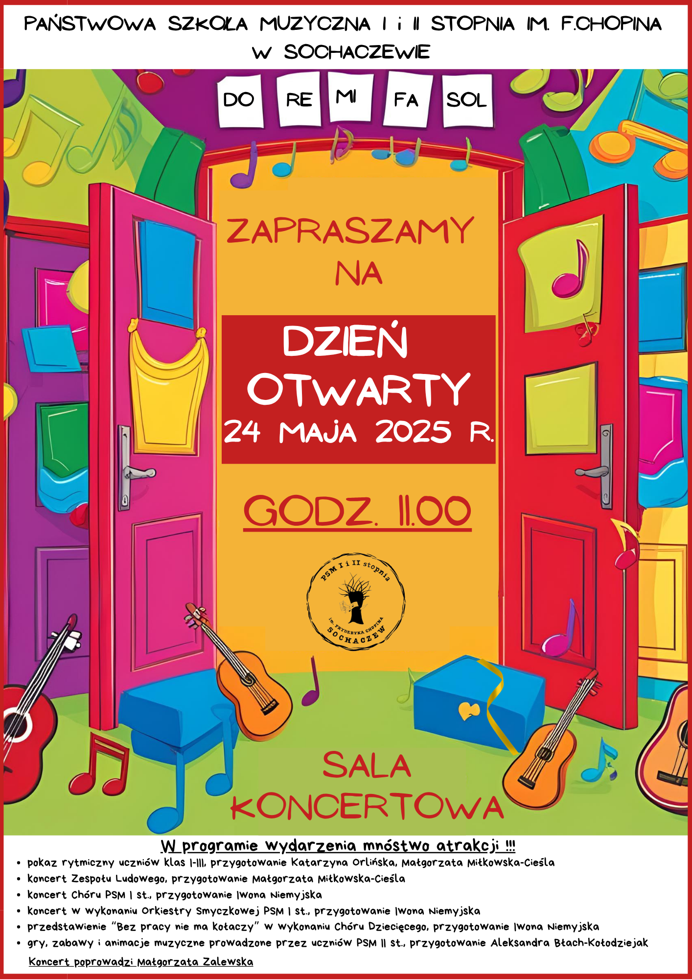 Wydarzenie rozpocznie się dnia 24 maja 2025 r. o godz. 11.00 w Sali Koncertowej Państwowej Szkoły Muzycznej I i II stopnia im. Fryderyka Chopina w Sochaczewie.