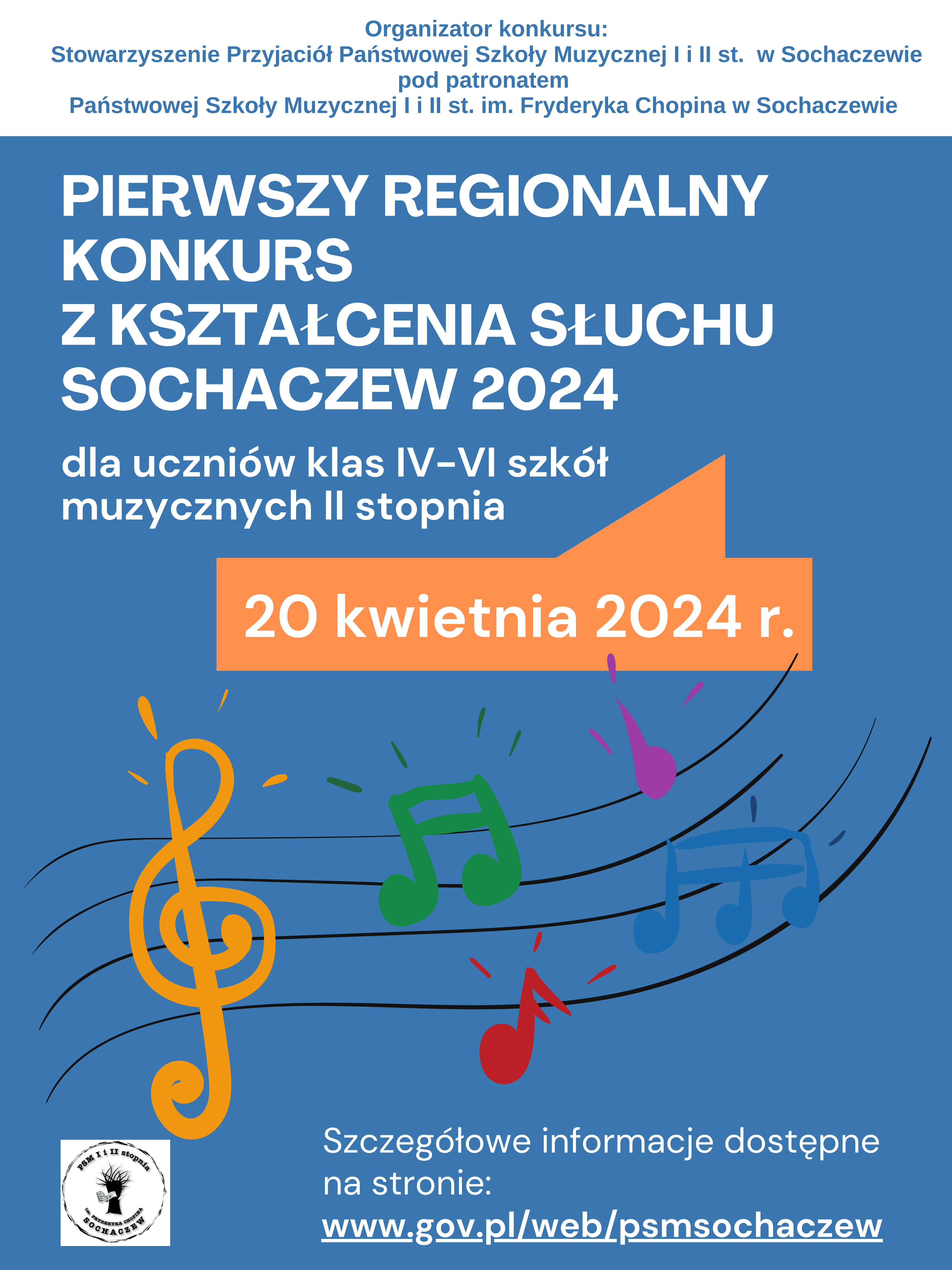 Zapraszamy na Pierwszy Regionalny Konkurs z Kształcenia Słuchu - Sochaczew 2024. Cele i założenia konkursu to rozwój słuchu i wyobraźni muzycznej uczniów, podnoszenie poziomu nauczania przedmiotów teoretycznych i zachęcanie uczniów do współzawodnictwa.