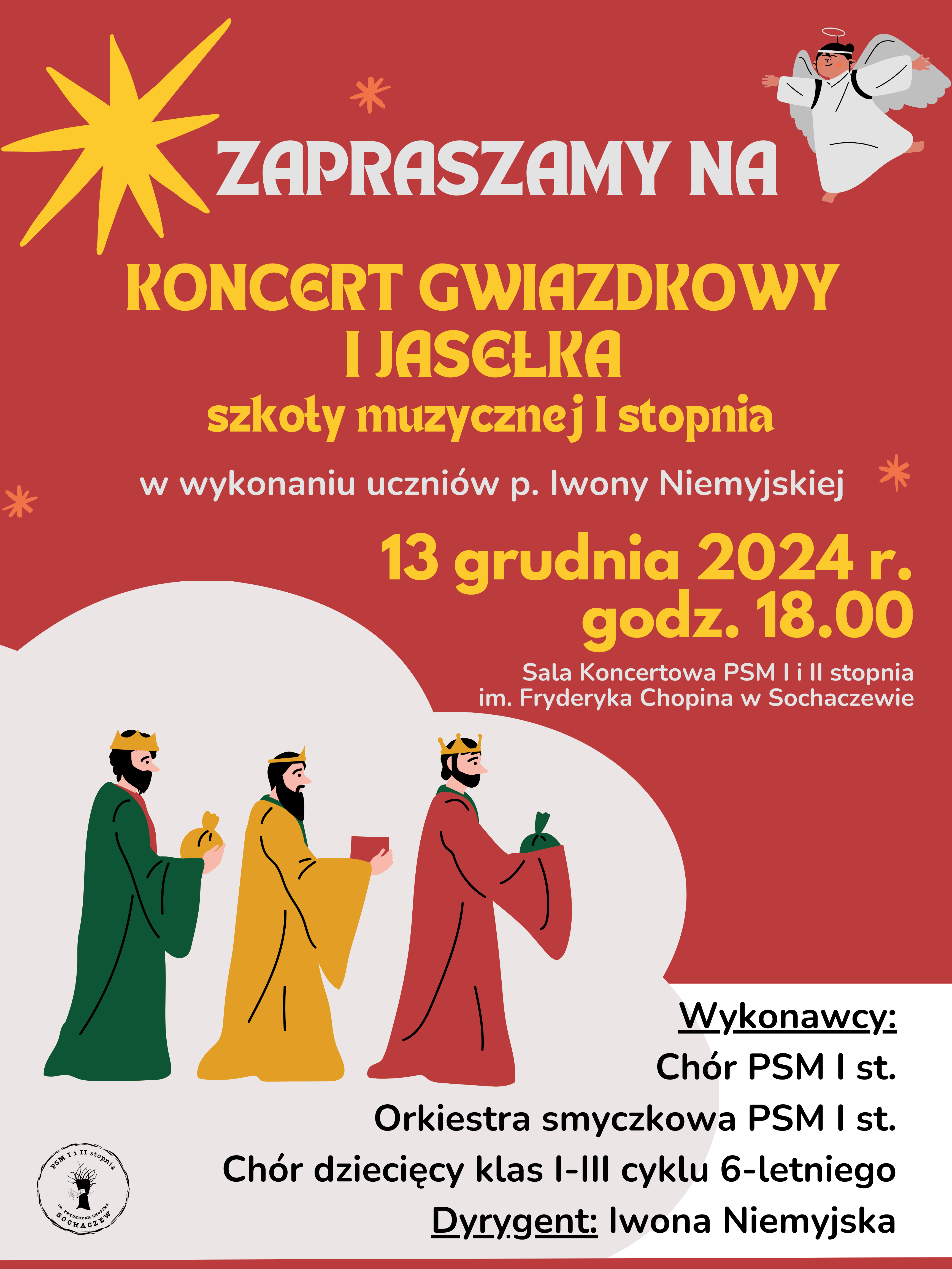 Zapraszamy na Koncert gwiazdkowy i Jasełka szkoły muzycznej I stopnia w wykonaniu uczniów p. Iwony Niemyjskiej.