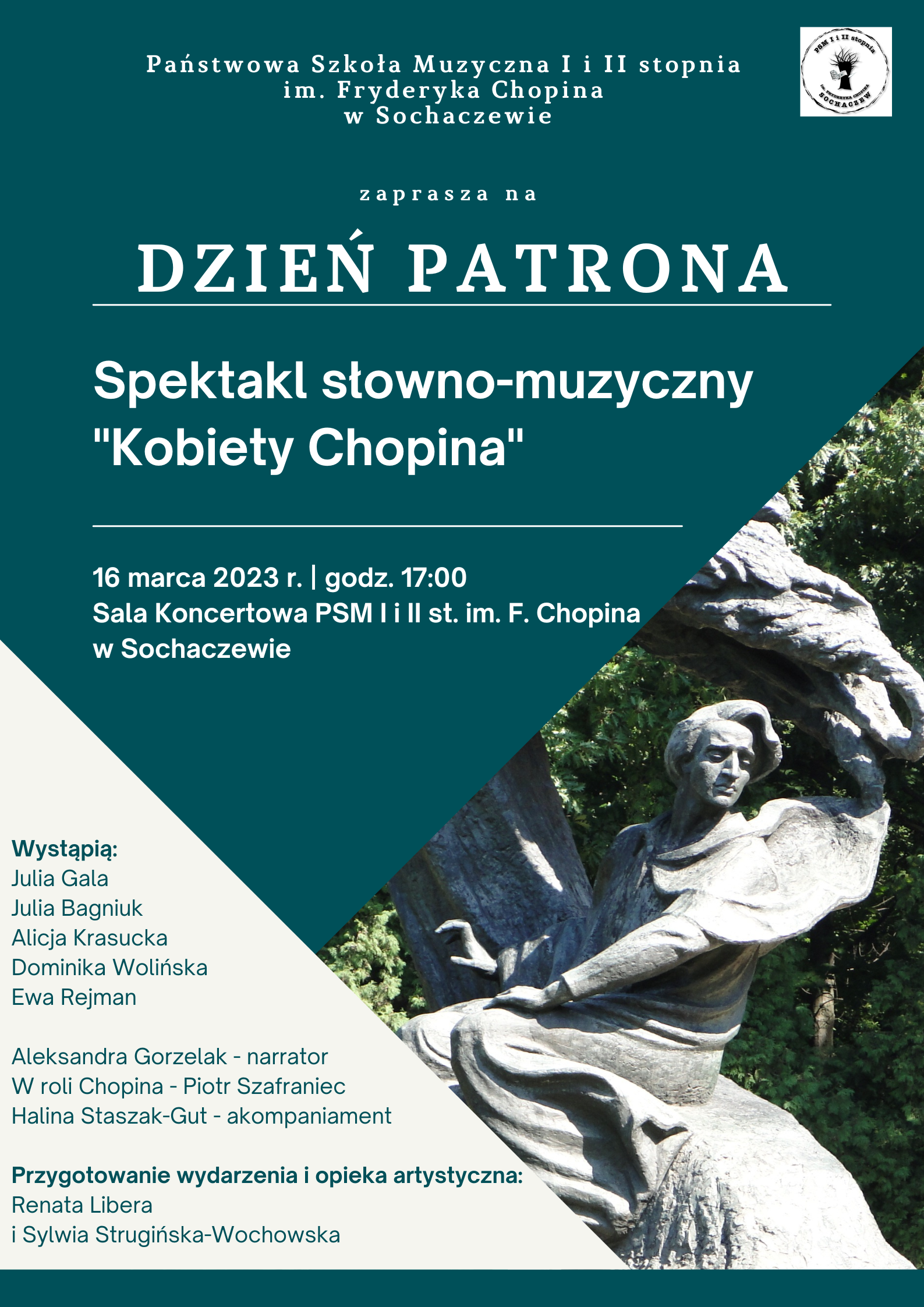 Uczennice z klasy śpiewu pracujące pod kierunkiem p. Renaty Libery i p. Sylwii Strugińskiej Wochowskiej przygotowały Spektakl słowno-muzyczny "Kobiety Chopina". Wydarzenie odbędzie sie w ramach obchodów Dnia Patrona Państwowej Szkoły Muzycznej I i II st. im. F. Chopina w Sochaczewie.