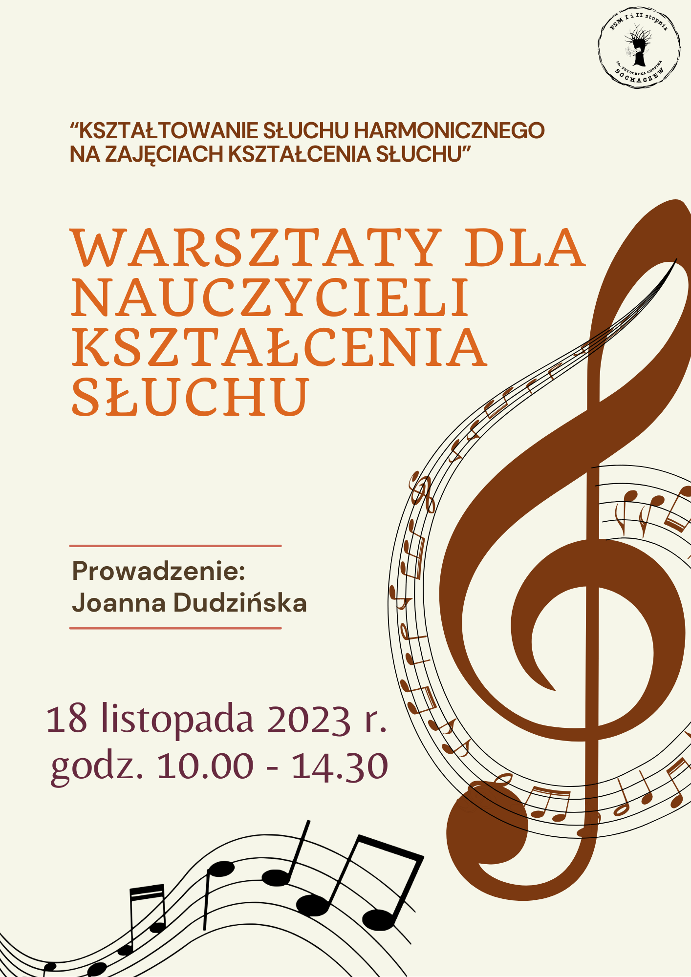 18 listopada 2023 r. w godz. od 10.00 do 14.30 w Państwowej Szkole muzycznej I i II st. im. F. Chopina w Sochaczewie odbędą się warsztaty dla nauczycieli kształcenia słuchu, które poprowadzi Pani Joanna Dudzińska. Warsztaty będą miały formę lekcji otwartych i wykładu, które odbędą się w sali nr 7 i w sali nr 59.
