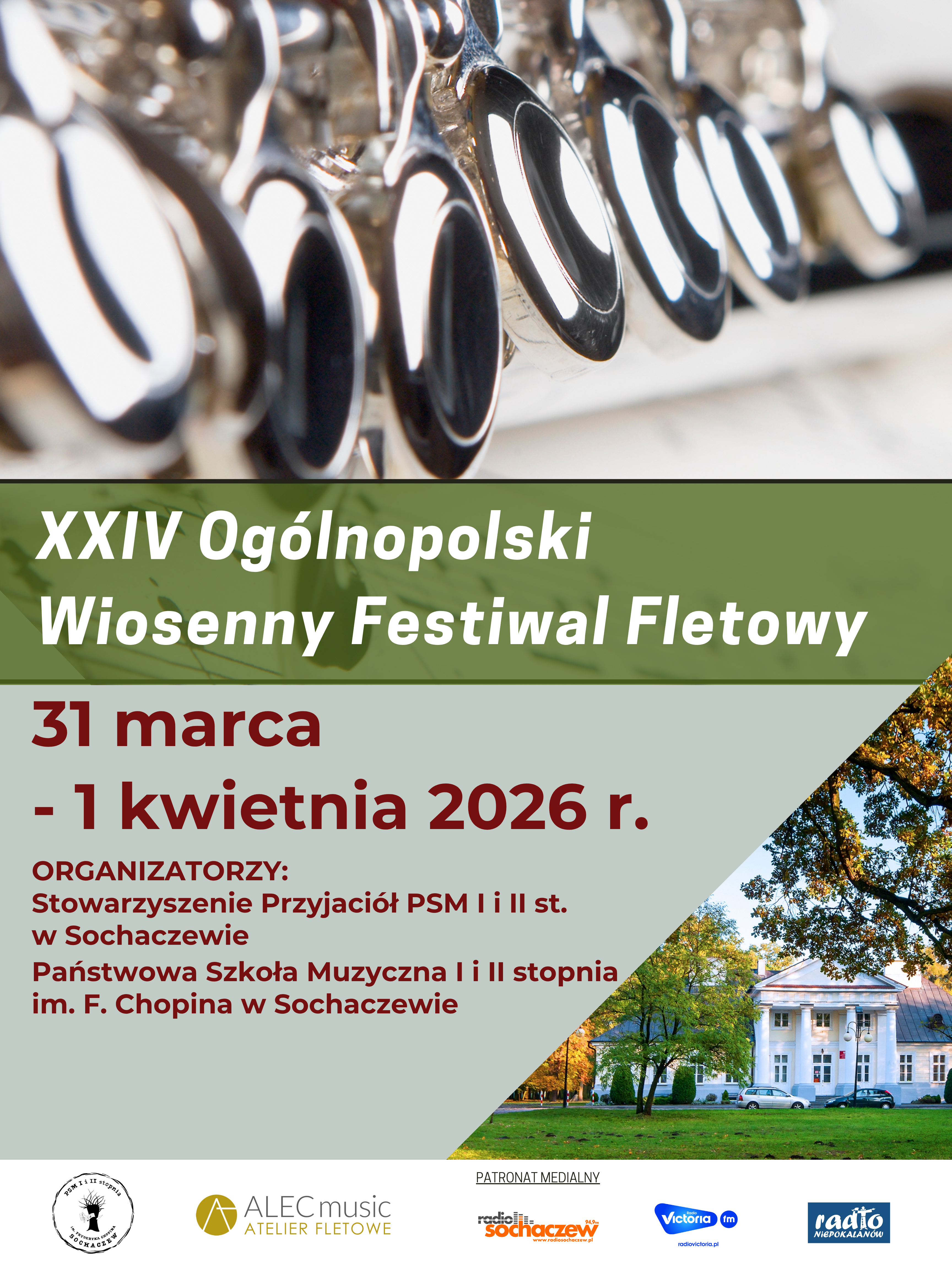 Zapraszamy na XXIV Ogólnopolski Wiosenny Festiwal Fletowy, który odbędzie się w dniach 31 marca -1 kwietnia 2026 roku.