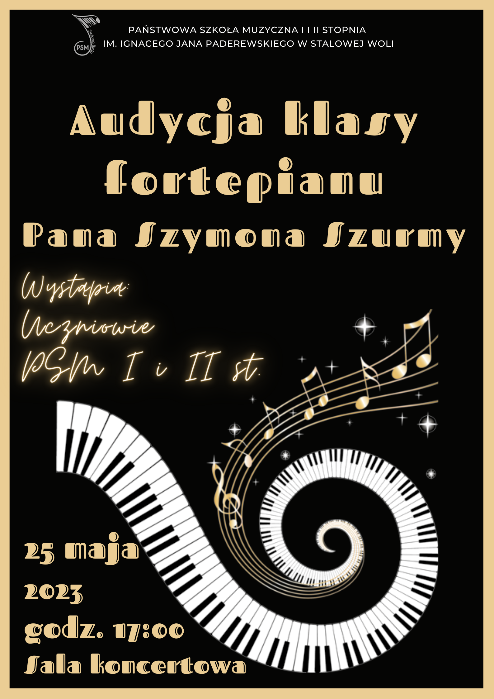 Serdecznie zapraszamy na Audycję muzyczną Uczniów klasy fortepianu Szymona Szurmy - 25 maja 2023 godz. 17:00