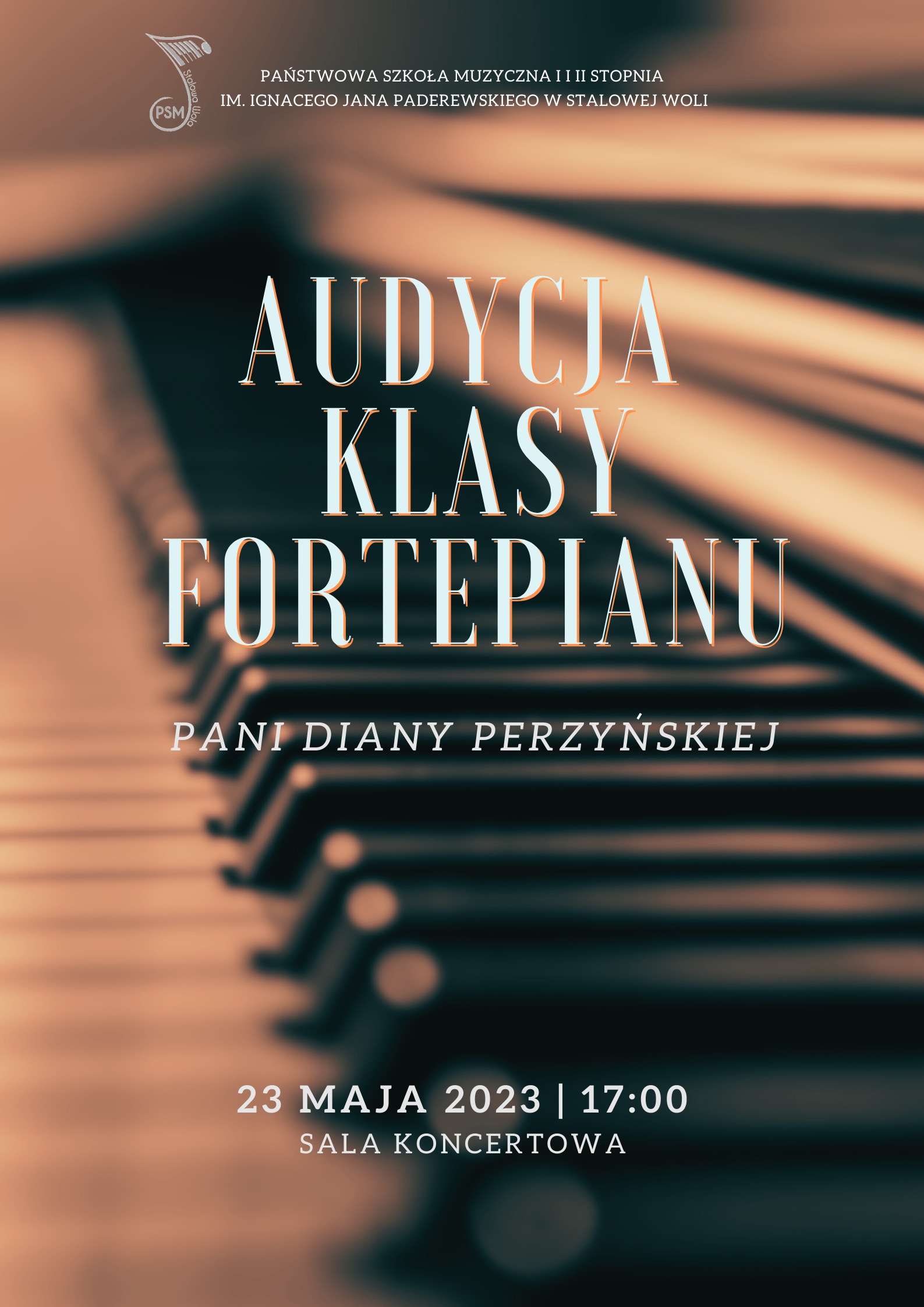 Serdecznie zapraszamy na Audycję muzyczną Uczniów klasy fortepianu Diany Perzyńskiej w dniu 23 maja 2023 godz. 17:00