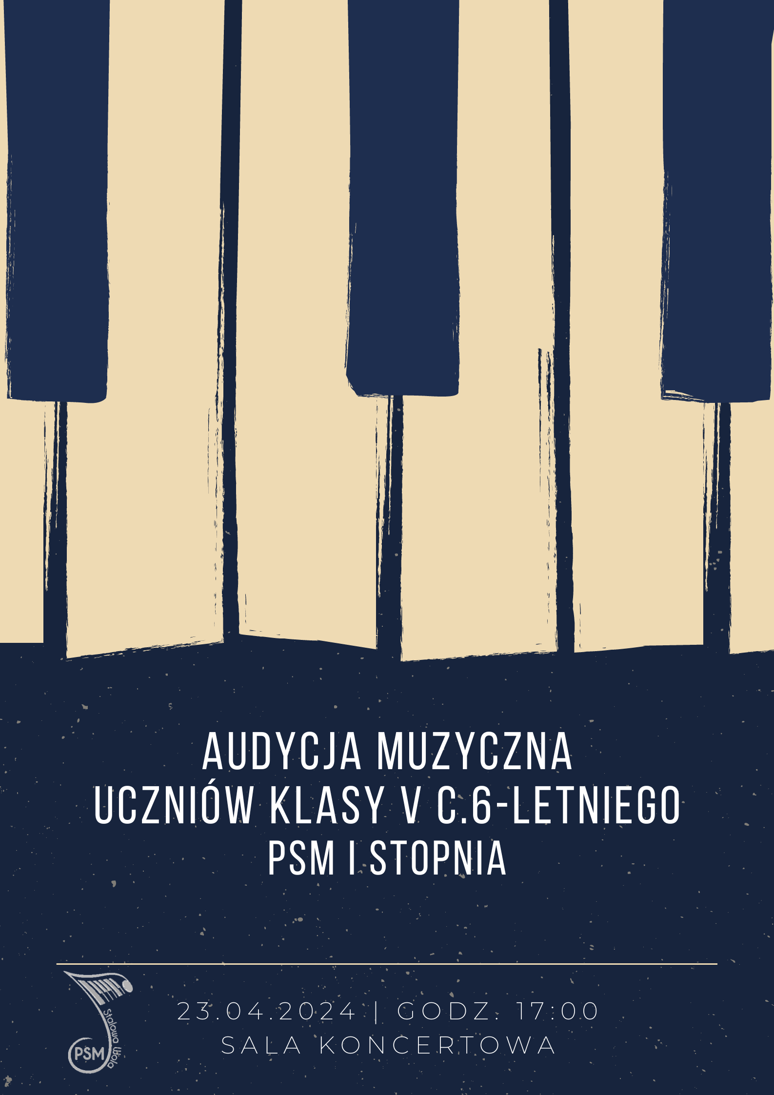 Audycja muzyczna uczniów klasy V c.6-letniego PSM I stopnia 23 kwietnia 2024 22.04.2024 Serdecznie zapraszamy Zdjęcia (1) Pokaż zdjęcie 1 z galerii.