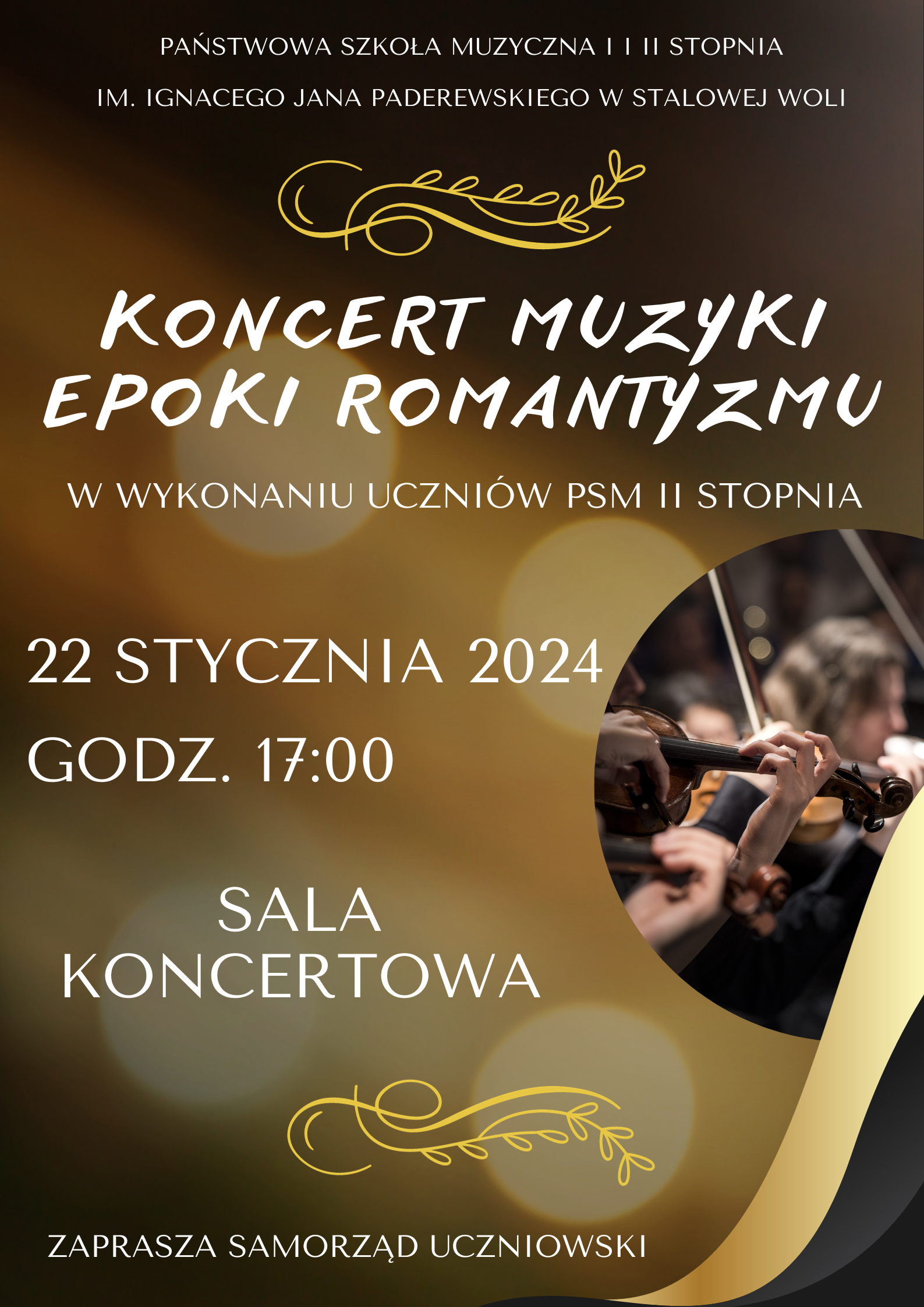 Koncert Muzyki Epoki Romantyzmu 22 stycznia 2024 16.01.2024 Serdecznie zapraszamy Zdjęcia (1) Pokaż zdjęcie 1 z galerii.