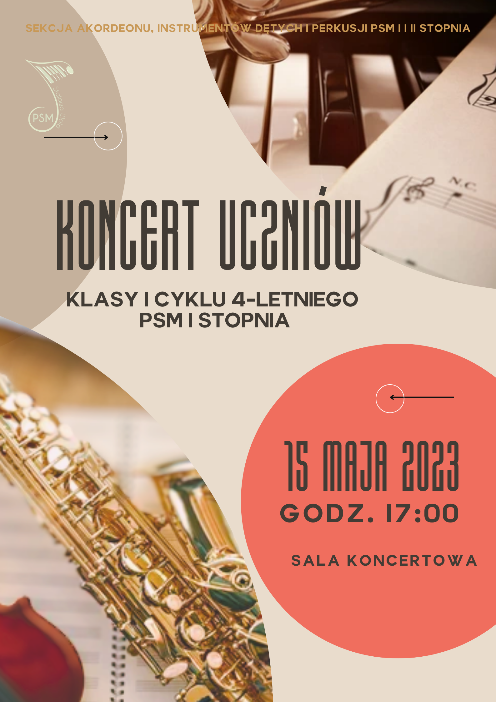 Koncert uczniów kl. I cyklu 4-letniego PSM I stopnia 15 maja 2023