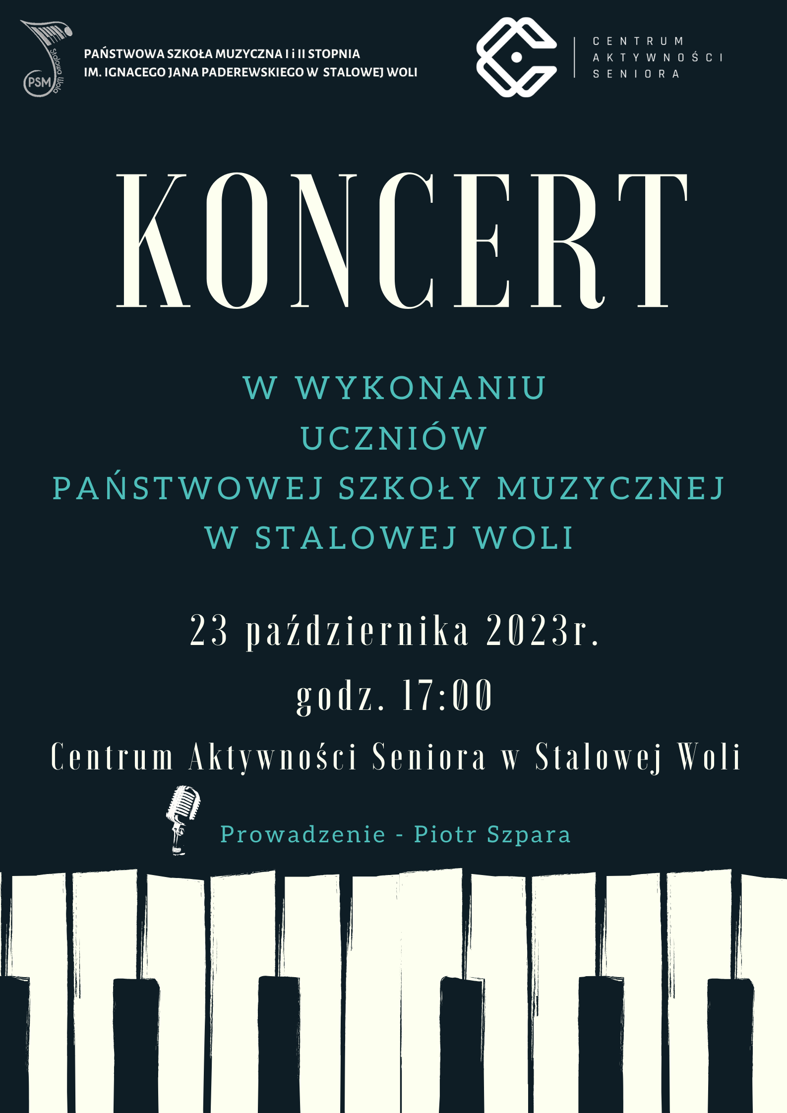 Serdecznie zapraszamy na Koncert Uczniów Naszej Szkoły - 23 października 2023 godz. 17:00 w Centrum Aktywności Seniora w Stalowej Woli