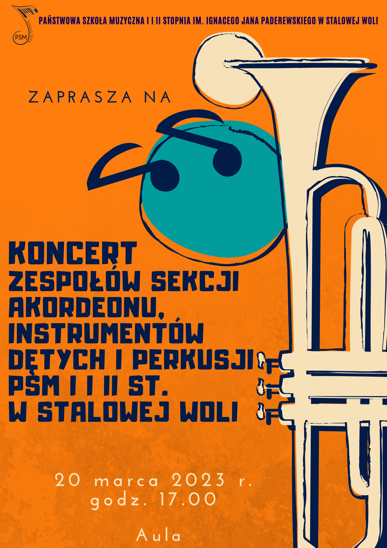 Serdecznie zapraszamy na koncert sekcji sekcji akordeonu, instrumentów dętych i perkusji PSM I i II stopnia w Stalowej Woli - 20 marca 2023r. godz. 17:00