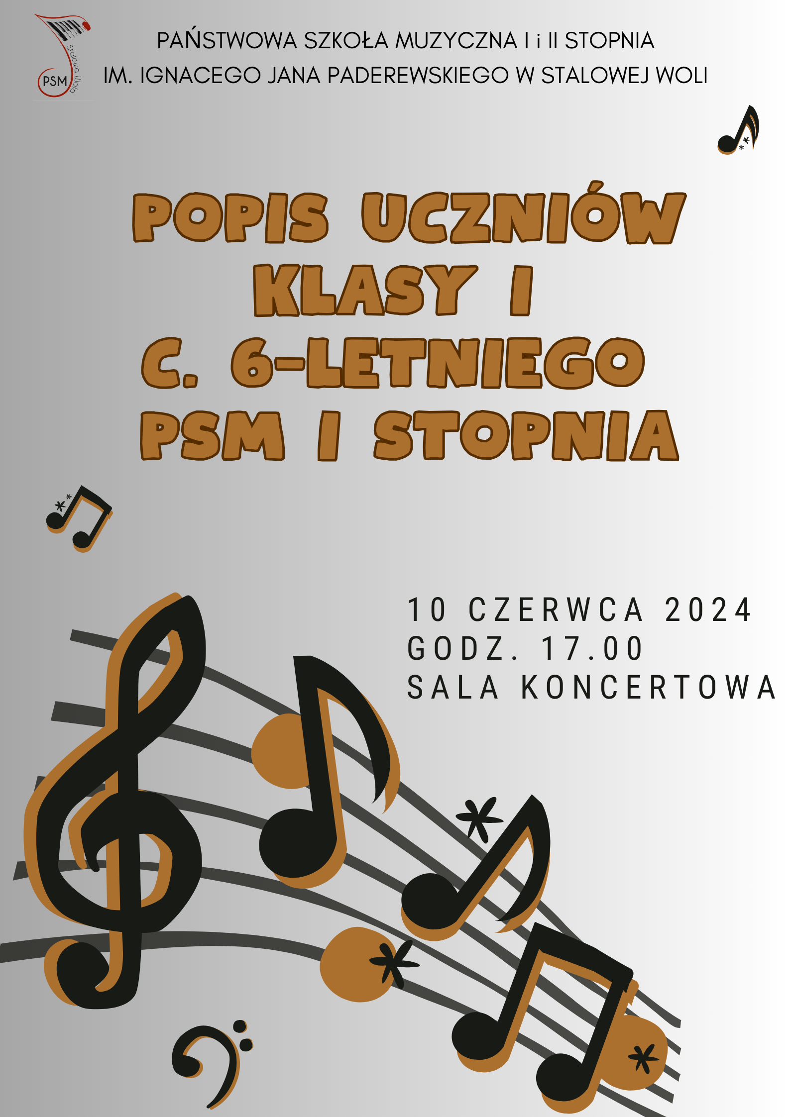 Popis Uczniów klasy I c.6-letniego PSM I stopnia 10 czerwca 2024 04.06.2024 Serdecznie zapraszamy. Szczegóły na plakacie Zdjęcia (1) Pokaż zdjęcie 1 z galerii.