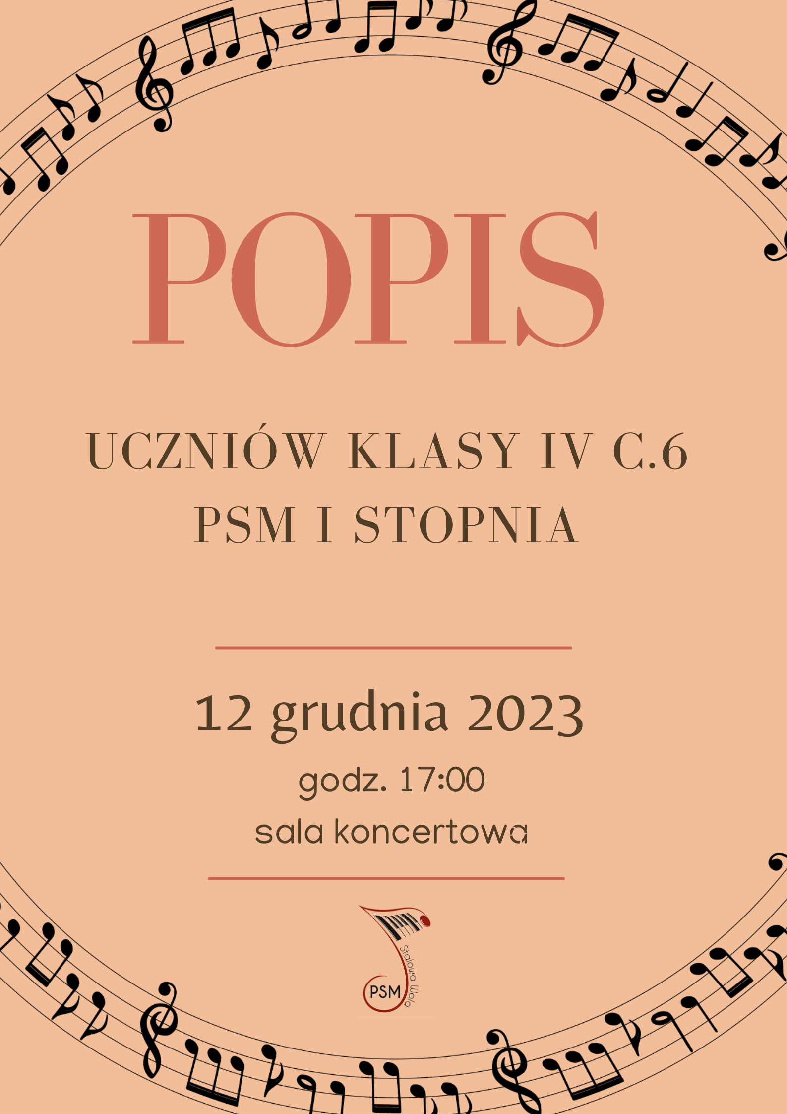 Popis Uczniów klasy IV c.6 PSM I stopnia 12 grudnia 2023 06.12.2023 Serdecznie zapraszamy na Popis Uczniów klasy IV c.6 PSM I stopnia Zdjęcia (1) Pokaż zdjęcie 1 z galerii.