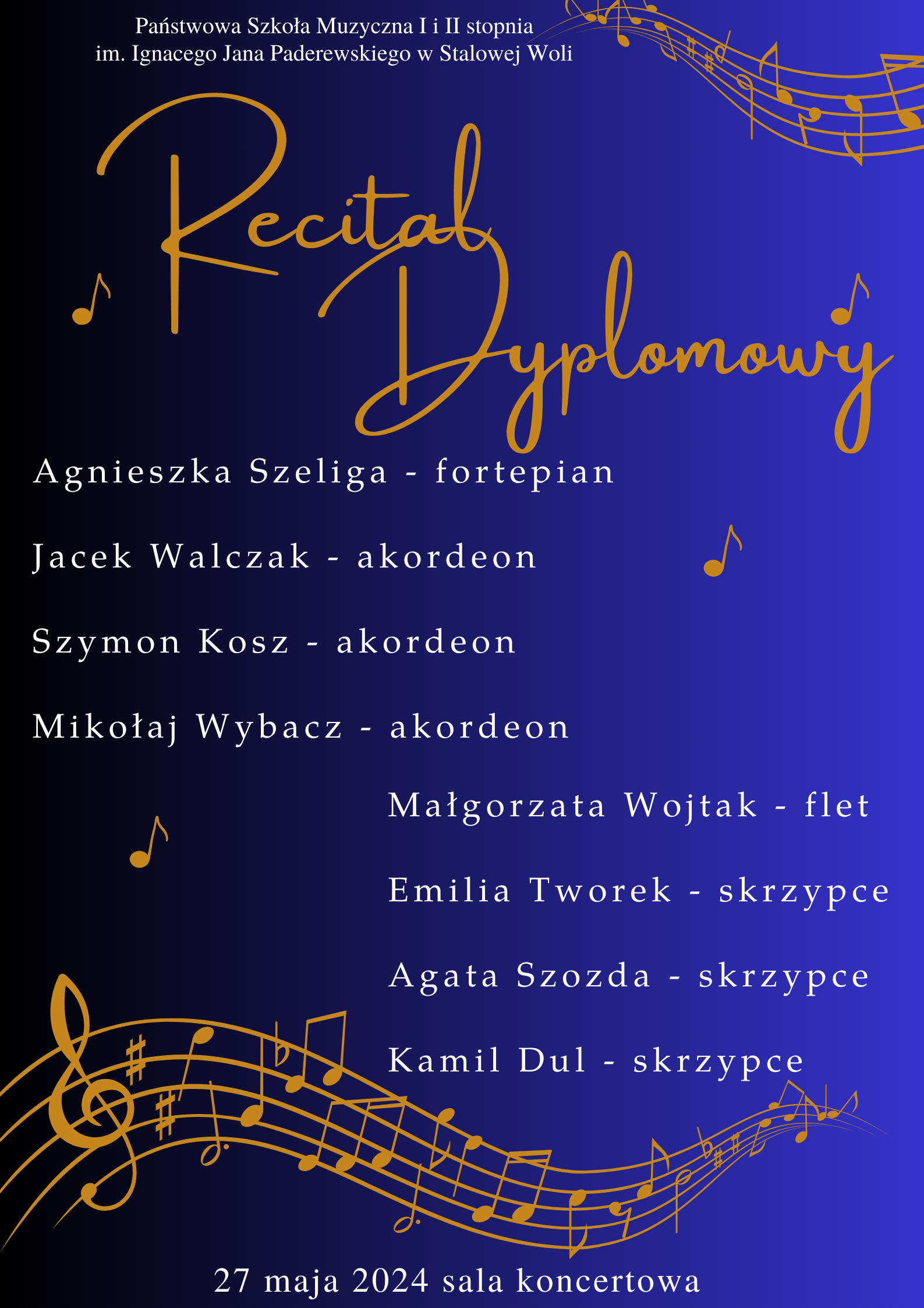 Serdecznie zapraszamy na Recital Dyplomowy Uczniów PSM II stopnia: