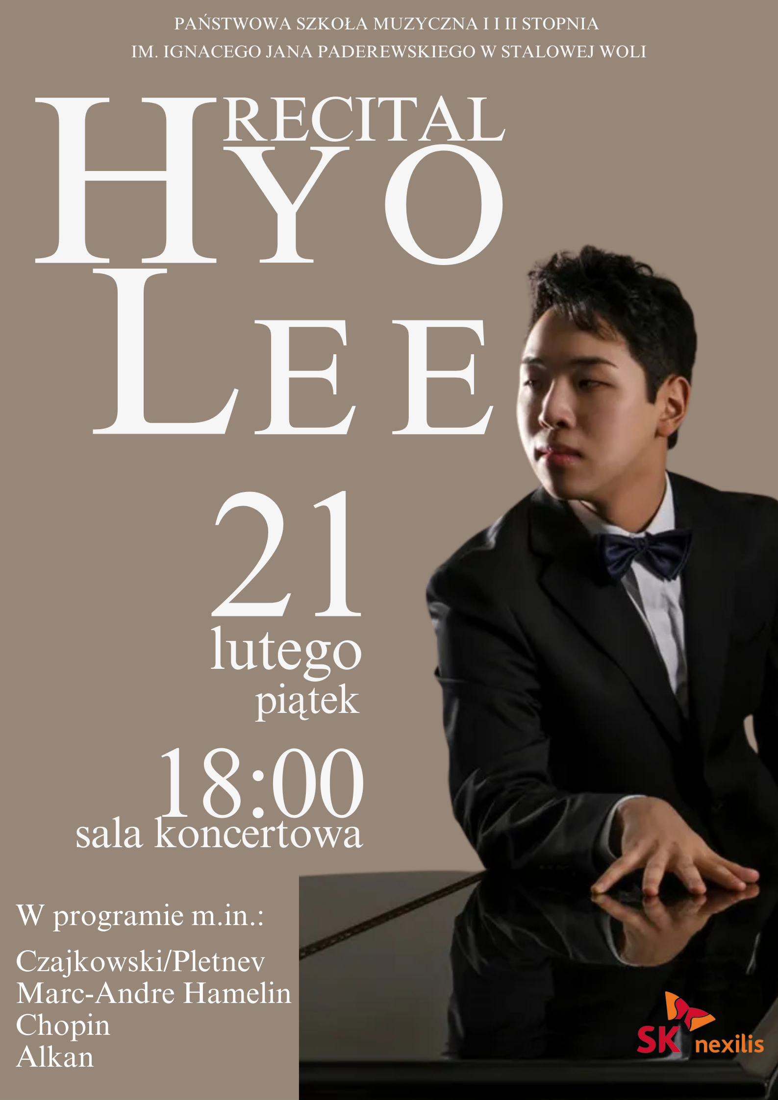 Państwowa Szkoła Muzyczna I i II stopnia im. Ignacego Jana Paderewskiego w Stalowej Woli serdecznie zaprasza na wyjątkowy recital fortepianowy w wykonaniu Hyo Lee – młodego pianisty o niezwykłej wrażliwości i wirtuozerii.