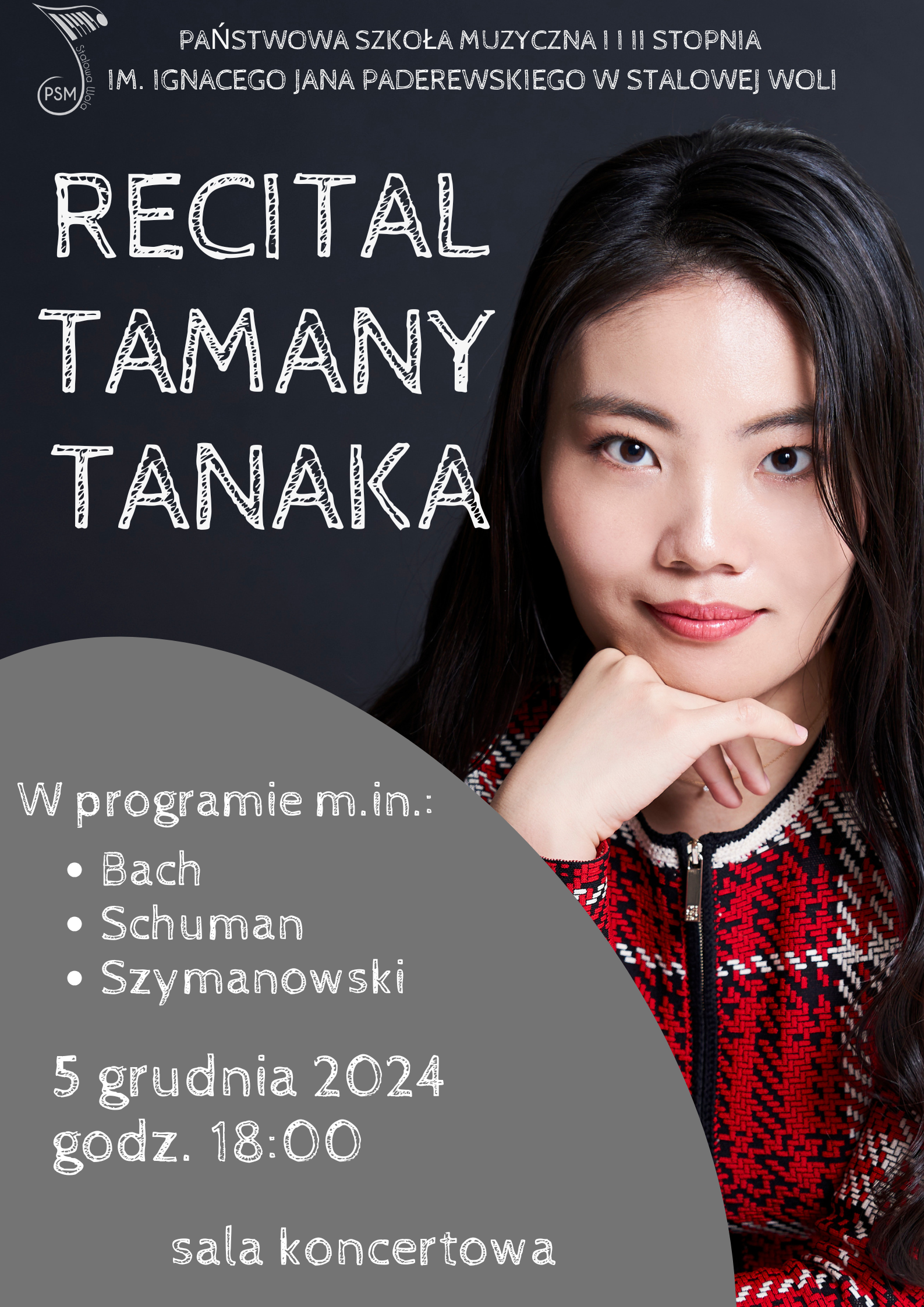 Recital Tamany Tanaka 5 grudnia 2024 03.12.2024 Serdecznie zapraszamy na Recital Pani Tamany Tanaka. Zdjęcia (1) Pokaż zdjęcie 1 z galerii.