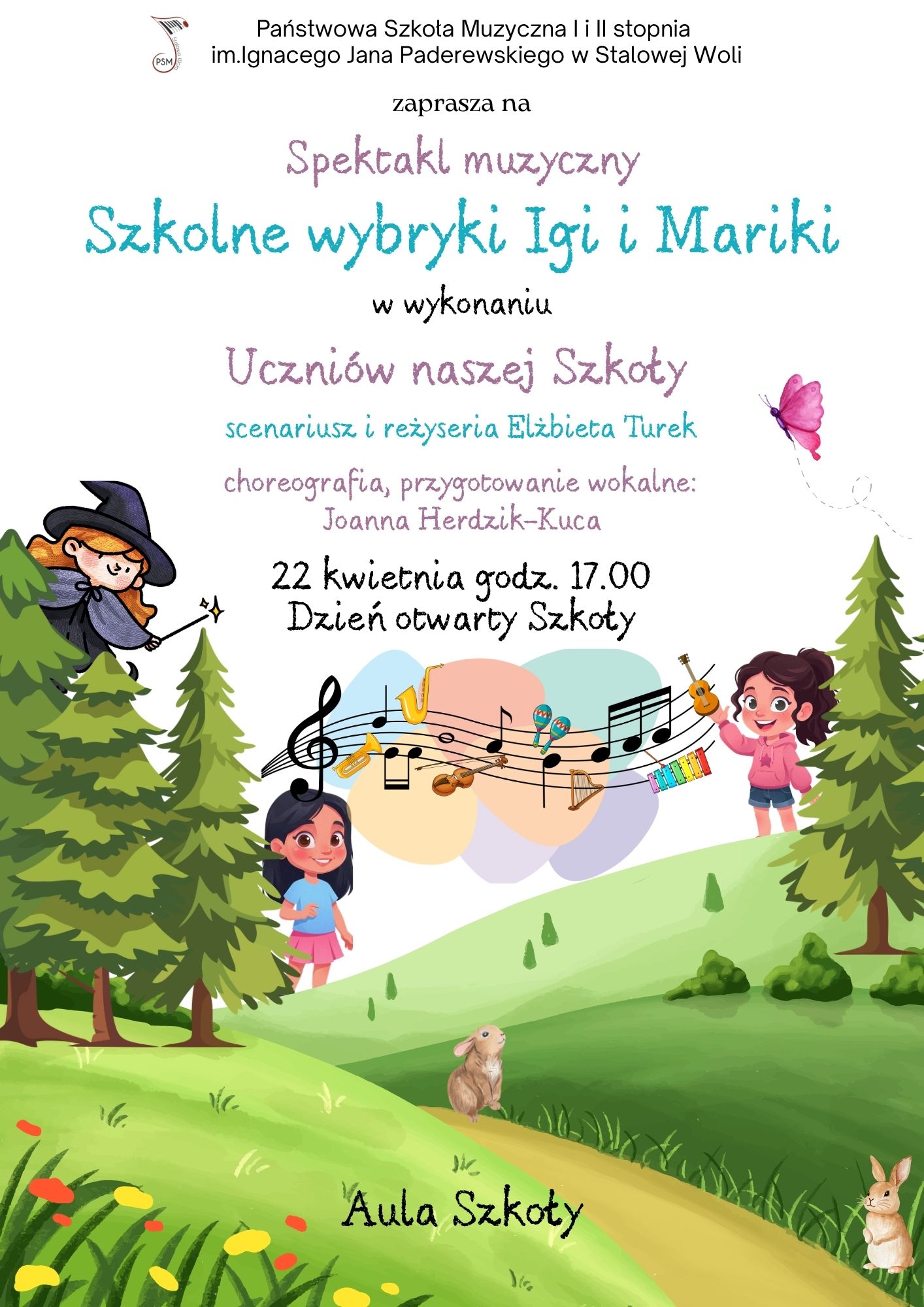 Państwowa Szkoła Muzyczna I i II stopnia im. Ignacego Jana Paderewskiego w Stalowej Woli zaprasza na spektakl muzyczny „Szkolne wybryki Igi i Mariki”.