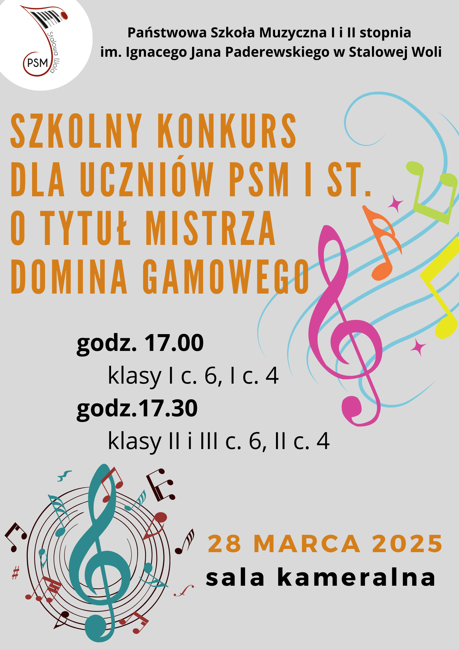 Serdecznie zapraszamy uczniów Państwowej Szkoły Muzycznej I stopnia do udziału w Szkolnym konkursie o tytuł mistrza domina gamowego, który odbędzie się 28 marca 2025 roku w sali kameralnej.