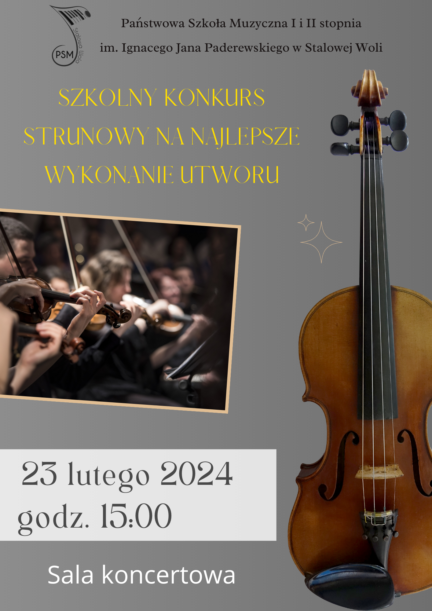 Szkolny Konkurs Strunowy na najlepsze wykonanie utworu 23 lutego 2024 22.01.2024 Serdecznie zapraszamy Zdjęcia (1) Pokaż zdjęcie 1 z galerii.