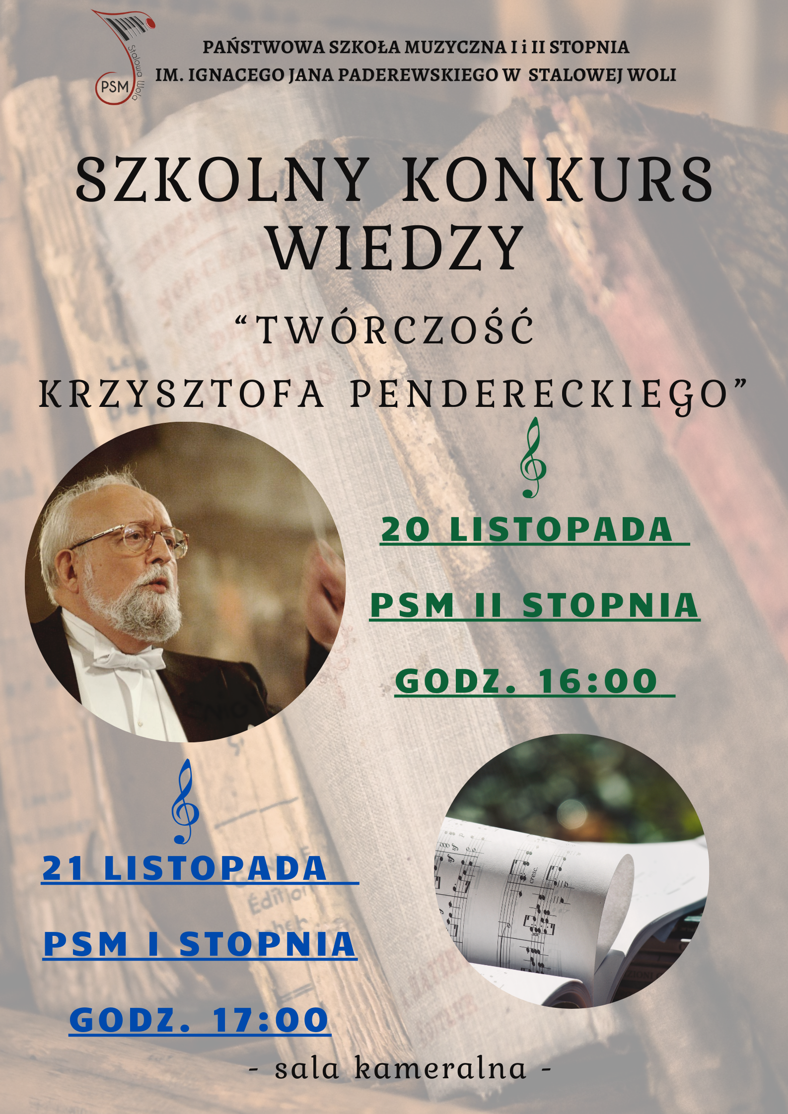 Szkolny Konkurs Wiedzy "Twórczość Krzysztofa Pendereckiego" 20-21 listopada 2023