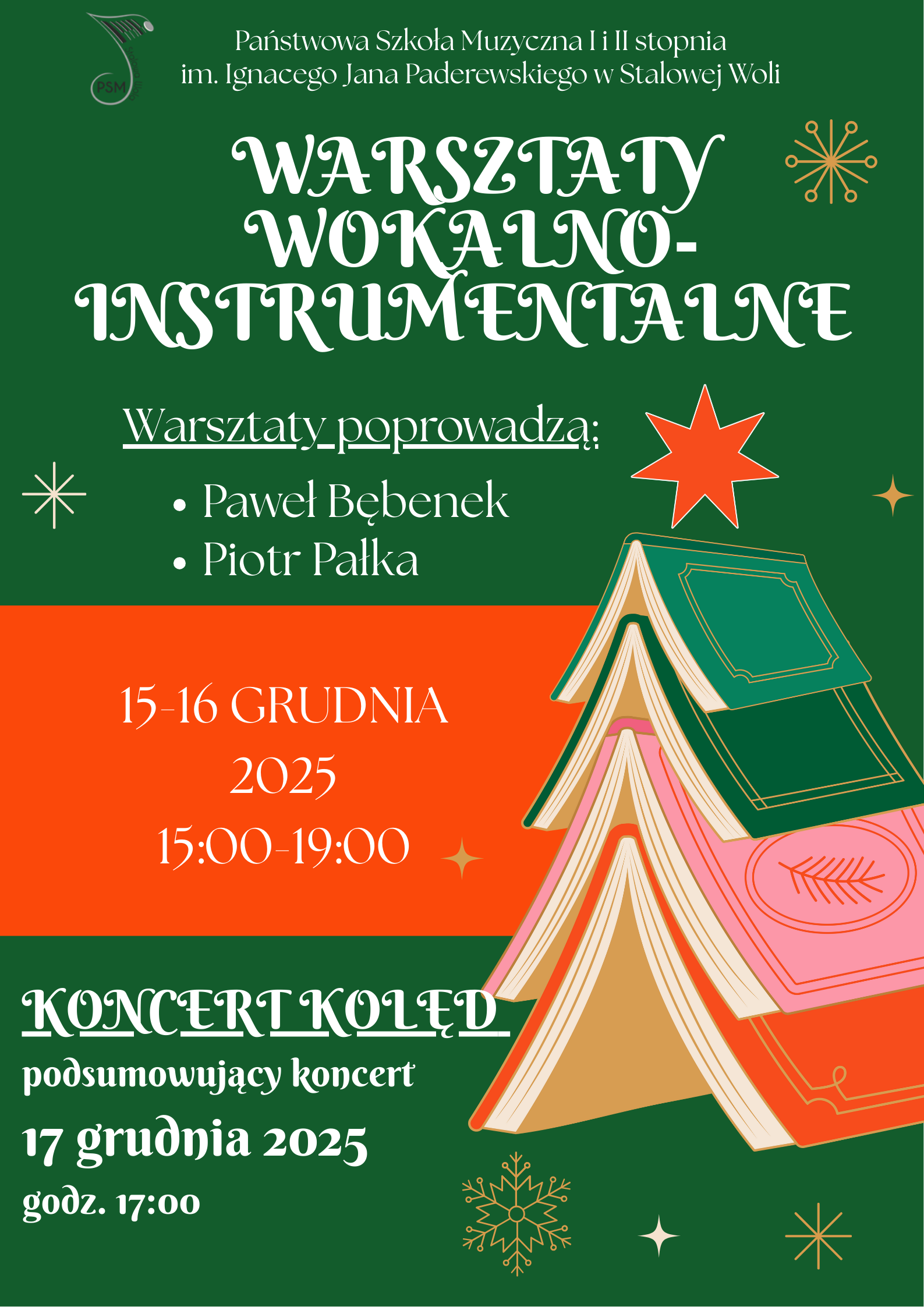 Zwieńczeniem warsztatów będzie koncert kolęd, który odbędzie się 17 grudnia 2025 o godz. 17:00. Serdecznie zapraszamy całą społeczność szkolną oraz gości.