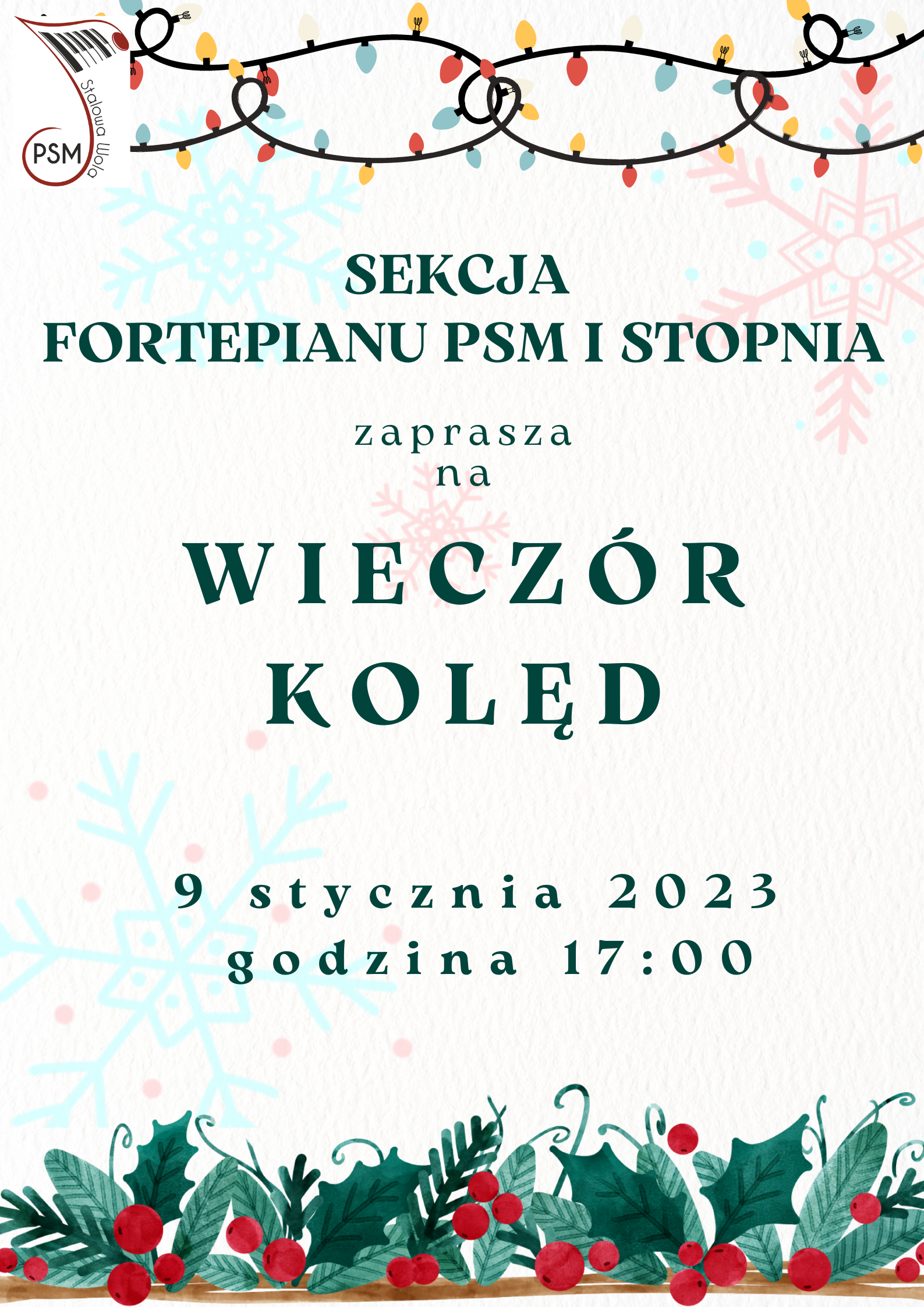 Serdecznie zapraszamy na Wieczór Kolęd w wykonaniu Uczniów Sekcji Fortepianu PSM I stopnia
