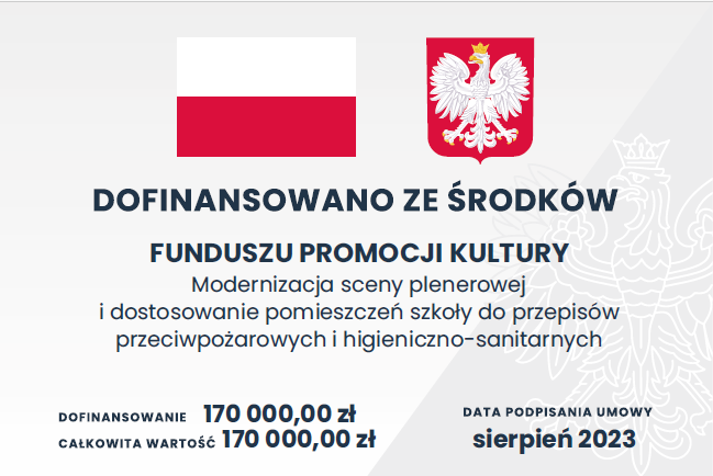 W ramach zadania dofinansowanego ze środków Ministra Kultury i Dziedzictwa Narodowego pochodzących z Funduszu Promocji Kultury - państwowego funduszu celowego nasza szkoła realizuje zadanie pn. :