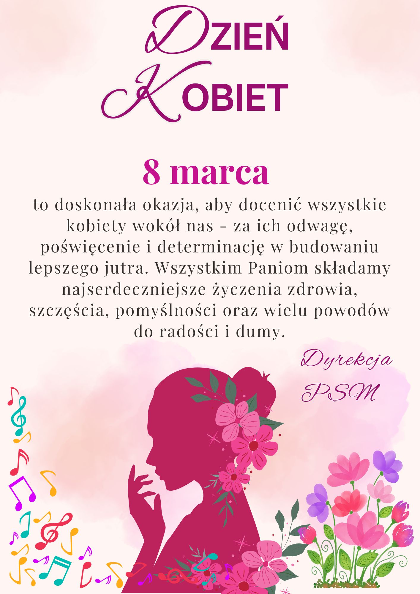 Z okazji Międzynarodowego Dnia Kobiet składamy wszystkim Paniom najserdeczniejsze życzenia zdrowia, szczęścia, spełnienia marzeń oraz wielu pięknych chwil – zarówno w życiu osobistym, jak i zawodowym.