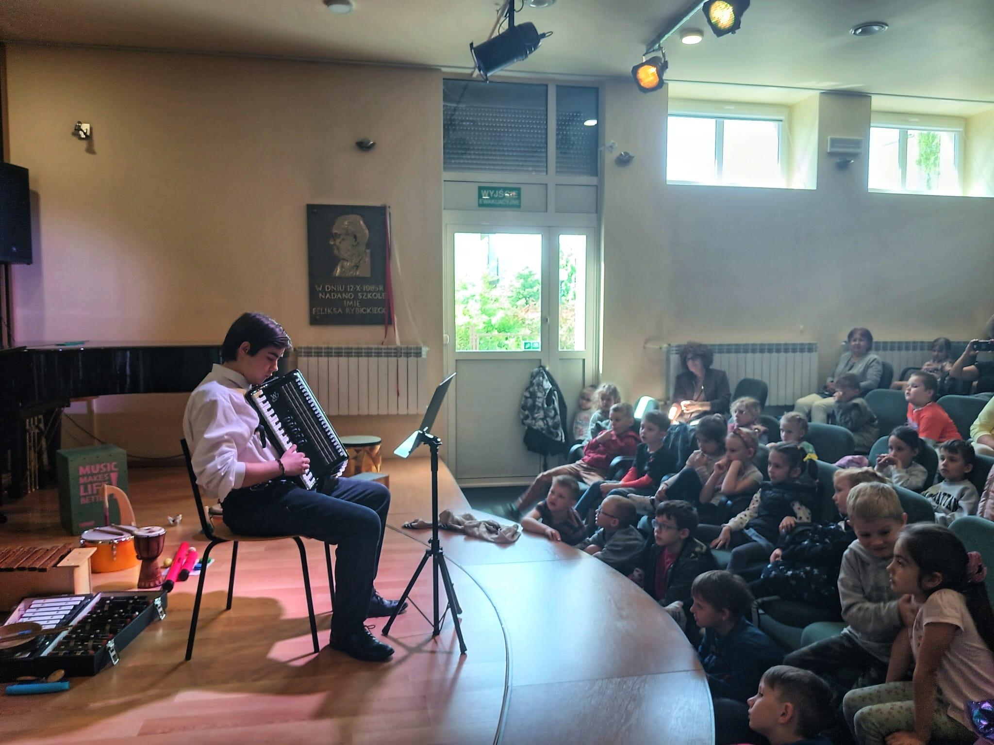 Zapraszamy do obejrzenia fotorelacji z koncertów dla szkół i przedszkoli, które odbyły się 7 i 8 maja. Na koncertach zaprezentowano wszystkie instrumenty, na których można uczyć się w naszej szkole czyli: fortepian, flet, klarnet, saksofon, wiolonczela, skrzypce, perkusja, akordeon, gitara. Koncertu o godzinie 10.00 wysłuchali uczniowie: Przedszkola Miejskiego nr 11 z Oddziałami Integracyjnymi, Przedszkola Miejskiego nr 14, Przedszkola Miejskiego nr 6, Przedszkola Miejskiego nr 2, a koncertu o godzinie 11.00 uczniowie: Szkoły Podstawowej nr 11 i Szkoły Podstawowej nr 12. Łącznie koncerty naszych uczniów wysłuchało w tym dniu 205 mamy nadzieję przyszłych uczniów naszej szkoły. Zapraszamy serdecznie do nas!!!